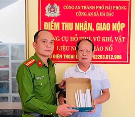 Công an xã Hà Bắc, TP Hải Phòng: Vận động nhân dân giao nộp 1 súng tự chế, 2 kiếm và 0,45kg pháo nổ.