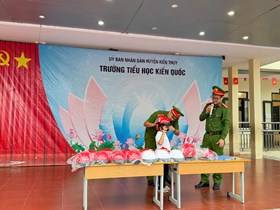 Công an xã Nghi Dương phối hợp tổ chức buổi tuyên truyền về an toàn giao thông tại trường Tiểu học Kiến Quốc