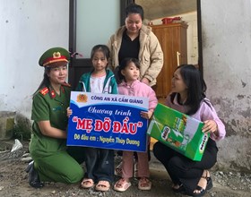 Công an xã Cẩm Giàng nhận đỡ đầu, trao quà tặng cháu bé có hoàn cảnh khó khăn