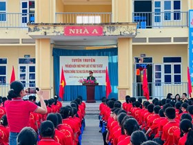Công an xã Tuệ Tĩnh tuyên truyền pháp luật tới hơn 800 học sinh, giáo viên