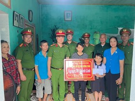 Công an xã Hà Nam nhận đỡ đầu, hỗ trợ nuôi dưỡng hai cháu nhỏ có hoàn cảnh đặc biệt khó khăn