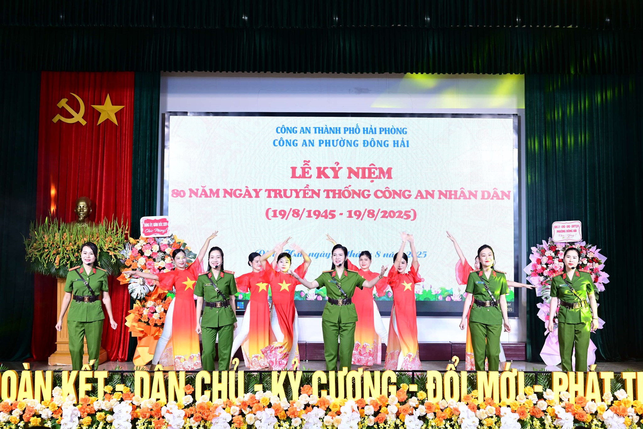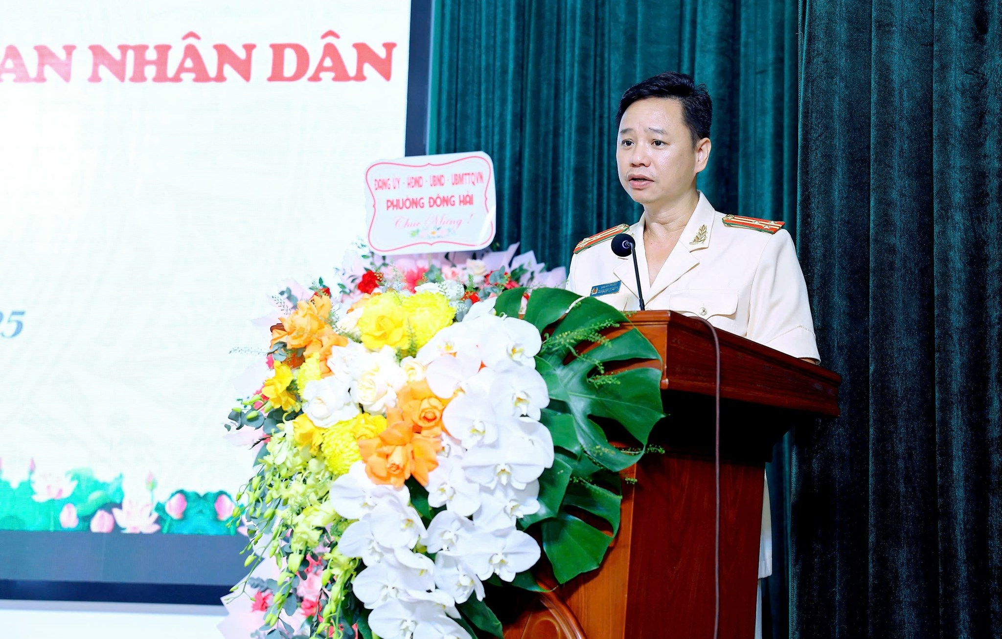 Tại buổi lễ, Thượng tá Đào Kỳ Phong – Trưởng Công an phường đã ôn lại truyền thống vẻ vang, những chiến công xuất sắc và sự hy sinh to lớn của các thế hệ cán bộ, chiến sĩ Công an nhân dân trong sự nghiệp bảo vệ an ninh Tổ quốc trong suốt 80 năm qua. Đồng chí khẳng định, trong giai đoạn mới, Công an phường tiếp tục phát huy truyền thống, chủ động nắm chắc tình hình, không ngừng nâng cao năng lực, đổi mới phương thức hoạt động, chủ động, sáng tạo, gắn bó mật thiết với Nhân dân, quyết tâm hoàn thành xuất sắc mọi nhiệm vụ, góp phần xây dựng phường Đông Hải ngày càng giàu đẹp, văn minh.