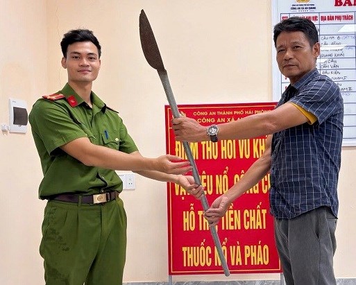 Một trường hợp khác là anh Vũ Văn Tiến (sinh năm 1968, trú tại thôn Đông Nham 2, xã An Quang). Khi đi trên quốc lộ 362, anh phát hiện 1 giáo tự chế dài khoảng 1,6m. Ý thức rõ quy định pháp luật, anh Tiến đã chủ động mang giao nộp cho Công an xã.