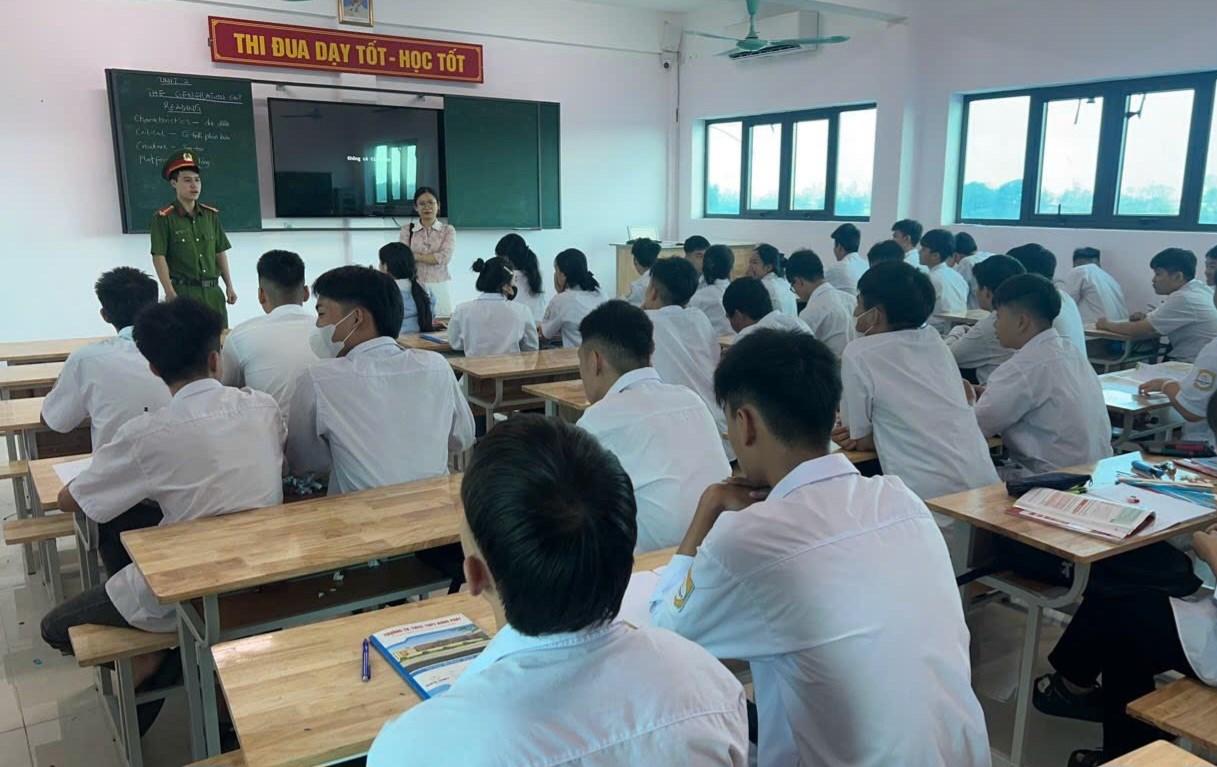 Công an xã Cẩm Giang phối hợp với Trường Liên cấp Hưng Phát tuyên truyền pháp luật cho học sinh khối 10 và khối 11