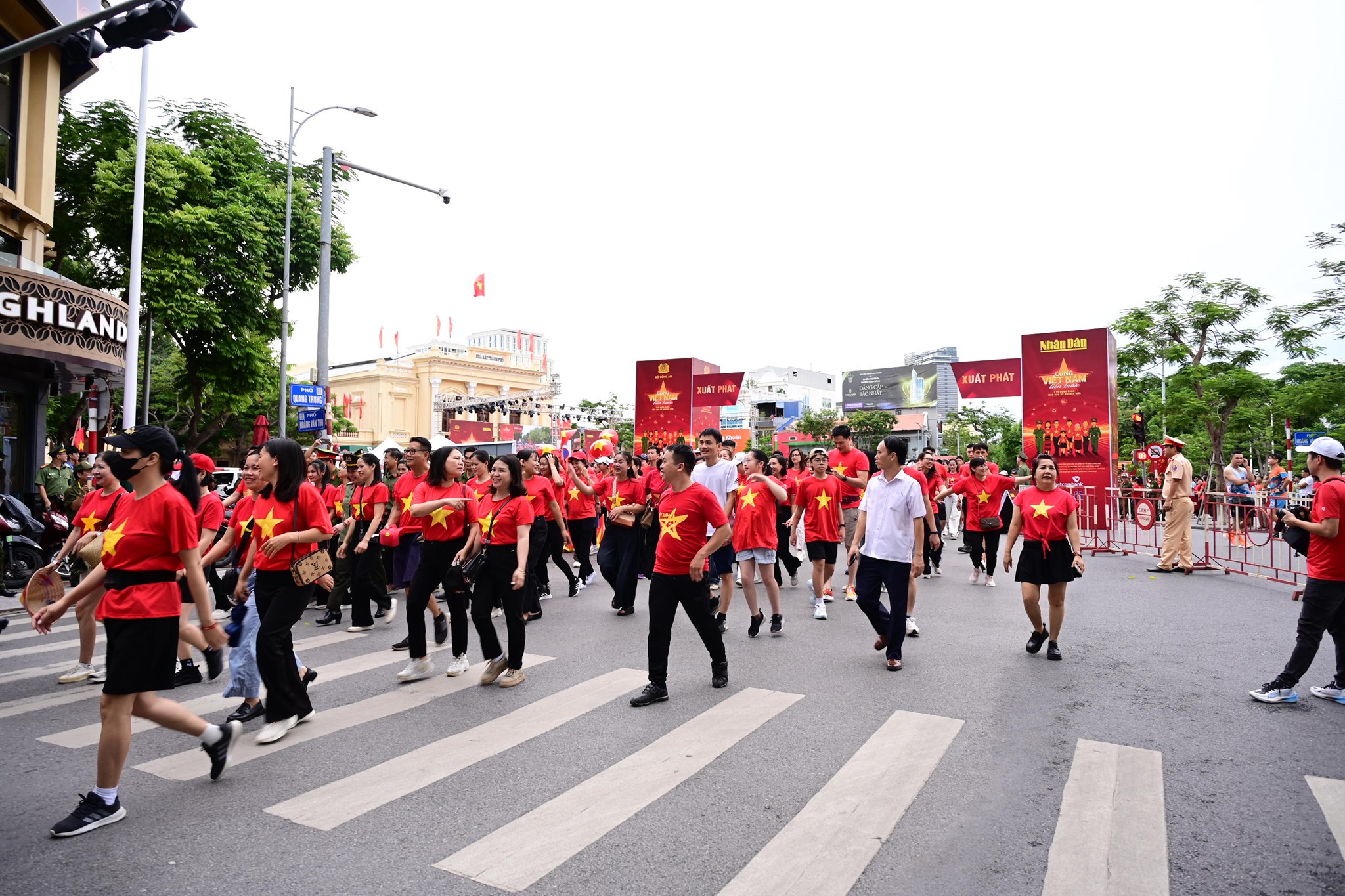 Đồng chí Lê Ngọc Châu, Phó Bí thư Thành ủy, Chủ tịch UBND thành phố cùng lãnh đạo các sở, ban, ngành và lãnh đạo CATP Hải Phòng tham dự sự kiện đi bộ
