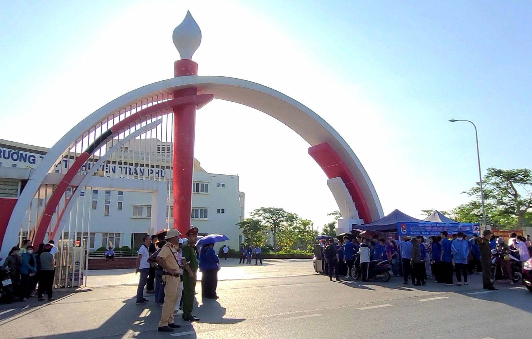 Ngay từ sáng sớm ngày 26/6, đông đảo phụ huynh đã có mặt, đưa đón con đến điểm thi Trường THPT Hồng Bàng. Theo Sở GD&ĐT thành phố, Kỳ thi tốt nghiệp THPT năm 2025 diễn ra trong 3 ngày 25, 26, 27/6 trên địa bàn thành phố. Trong đó, 2 ngày 26, 27/6, các thí sinh bước vào dự thi các môn thi chính thức với các môn: Ngữ văn, Toán, môn thi tổ hợp khoa học tự nhiên (Vật lý, Hóa học, Sinh học) và tổ hợp khoa học xã hội (Lịch sử, Địa lý, Giáo dục công dân).