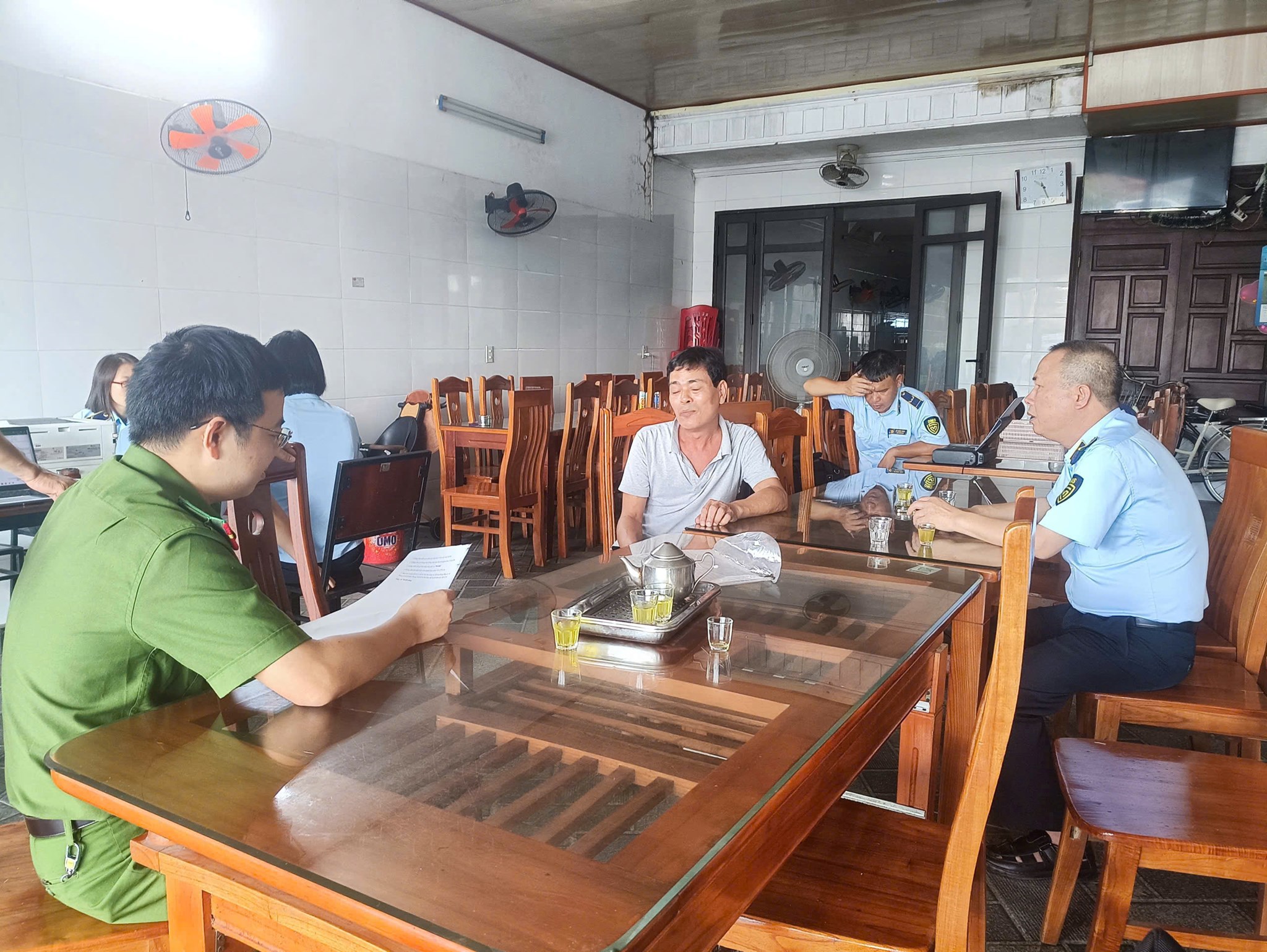 Công an xã Vĩnh Am và các cơ quan chức năng làm việc với Hộ kinh doanh nhà hàng Tỵ Quỳnh