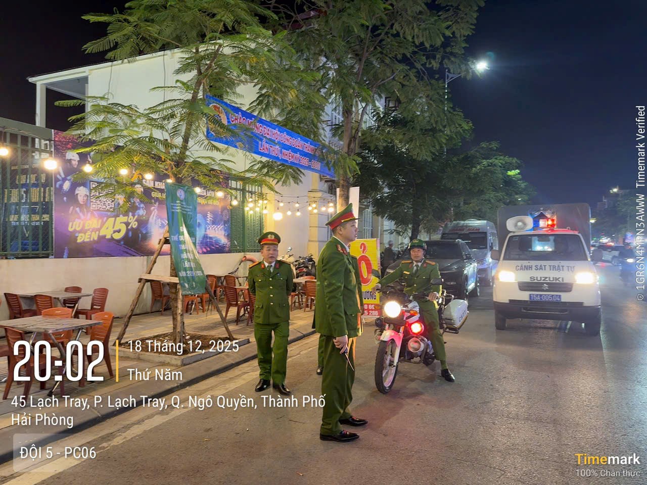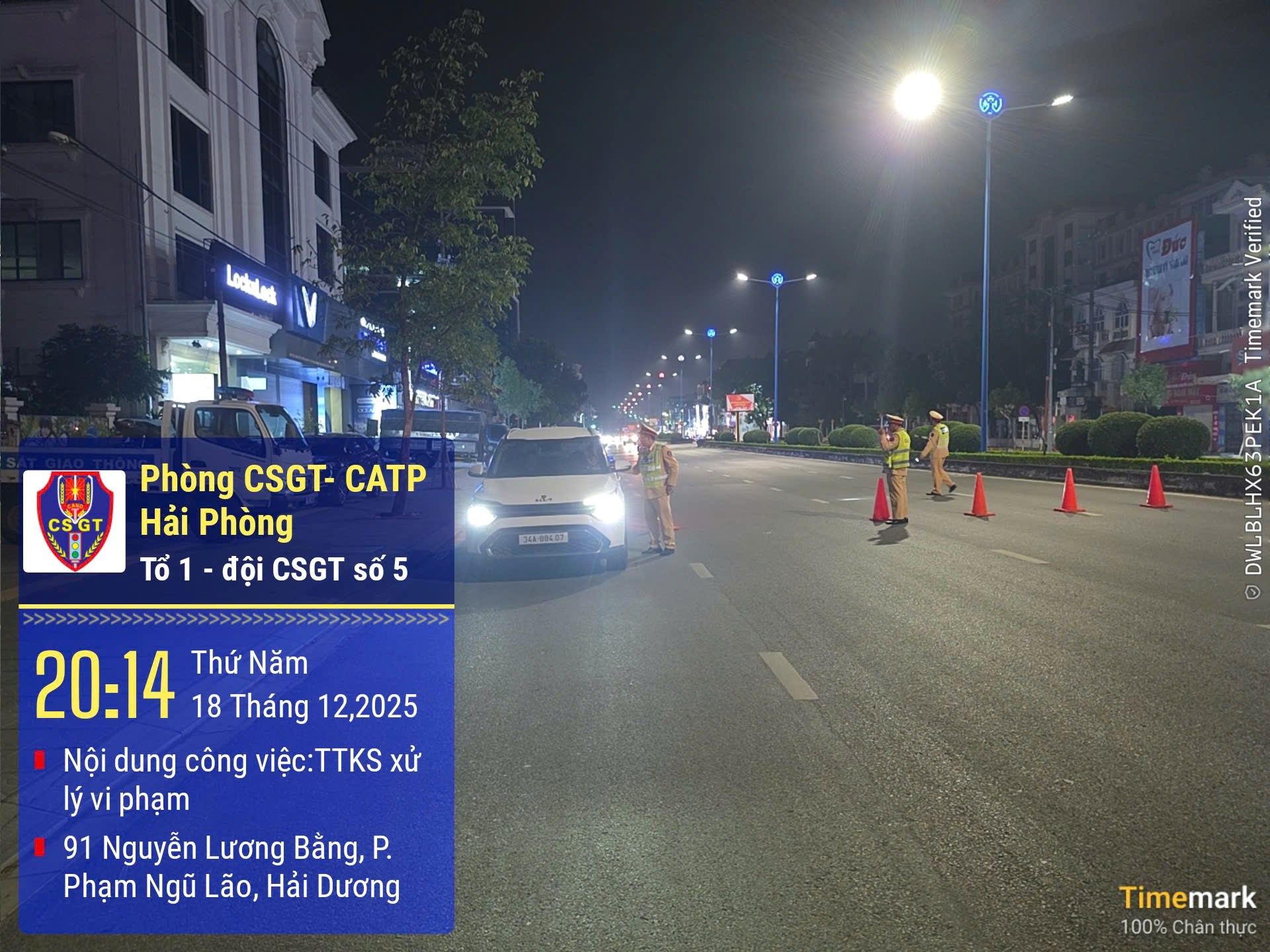 Kết quả, Phòng Cảnh sát giao thông đã kiểm soát 658 phương tiện, phát hiện 22 trường hợp vi phạm trật tự an toàn giao thông, phạt theo lỗi hơn 75 triệu đồng. Phòng Quản lý hành chính về trật tự xã hội triển khai tối đa lực lượng đảm bảo trật tự công cộng, trật tự đường hè từ 20h tại các tuyến đường Lạch Tray, Nguyễn Lương Bằng, Võ Nguyên Giáp, Trường Chinh, Hồ Sen, Võ Nguyên Giáp, Bùi Viện... Phòng Cảnh sát cơ động phát hiện L.V.C, sinh năm 2007, trú tại xã Sốp Cộp, Sơn La vi phạm trật tự an toàn giao thông.