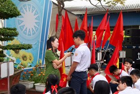 Công an phường Nhị Chiểu phối hợp giáo dục pháp luật, xây dựng môi trường học đường an toàn tại Trường THCS Duy Tân