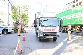 Tổ địa bàn Cát Hải, Đội CSGT số 4 Phòng Cảnh sát giao thông số 4 đảm bảo an toàn giao tuyến đường huyện Cát Hải