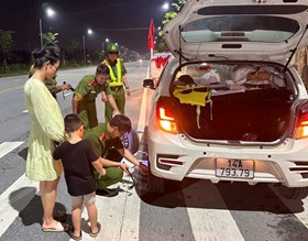Công an phường Thuỷ Nguyên giúp Nhân dân khắc phục ô tô gặp sự cố