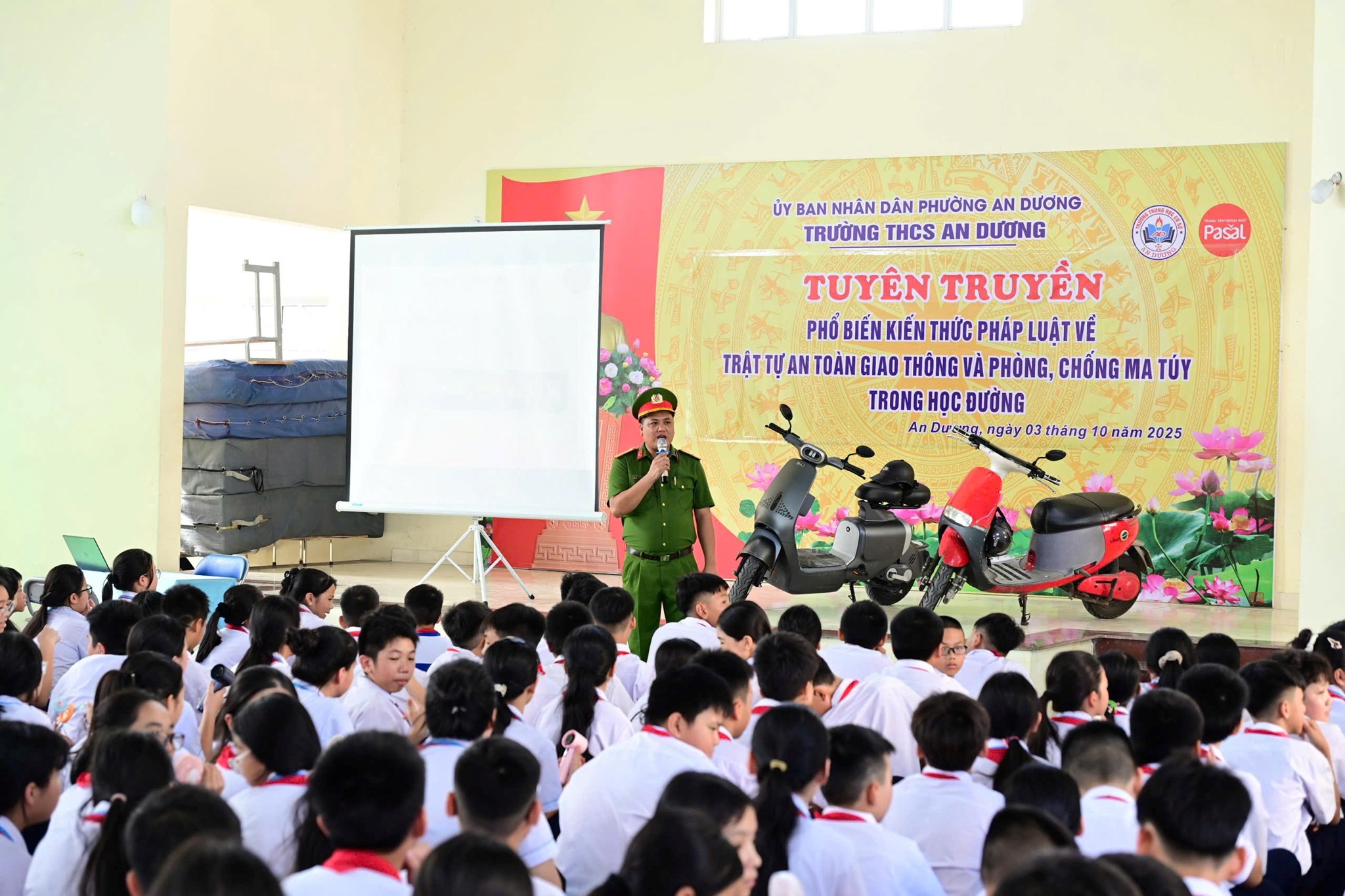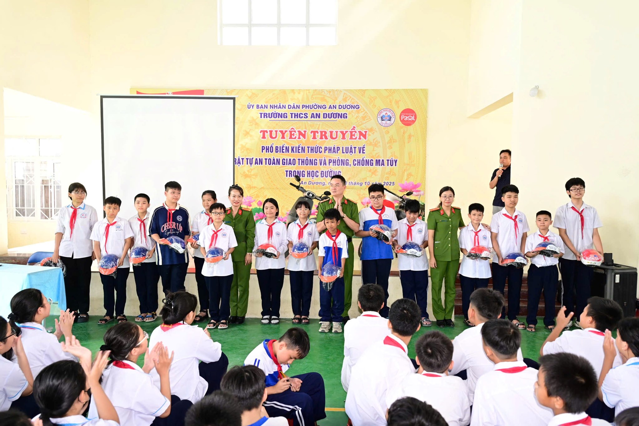 Chiều 03/10/2025, tại Trường Trung học cơ sở An Dương (phường An Dương), Công an phường An Dương phối hợp với Nhà trường tổ chức Hội nghị “Tuyên truyền phổ biến kiến thức pháp luật về Trật tự an toàn giao thông và Phòng, chống ma túy trong học đường”. Chương trình thu hút hơn 600 học sinh trong nhà trường.