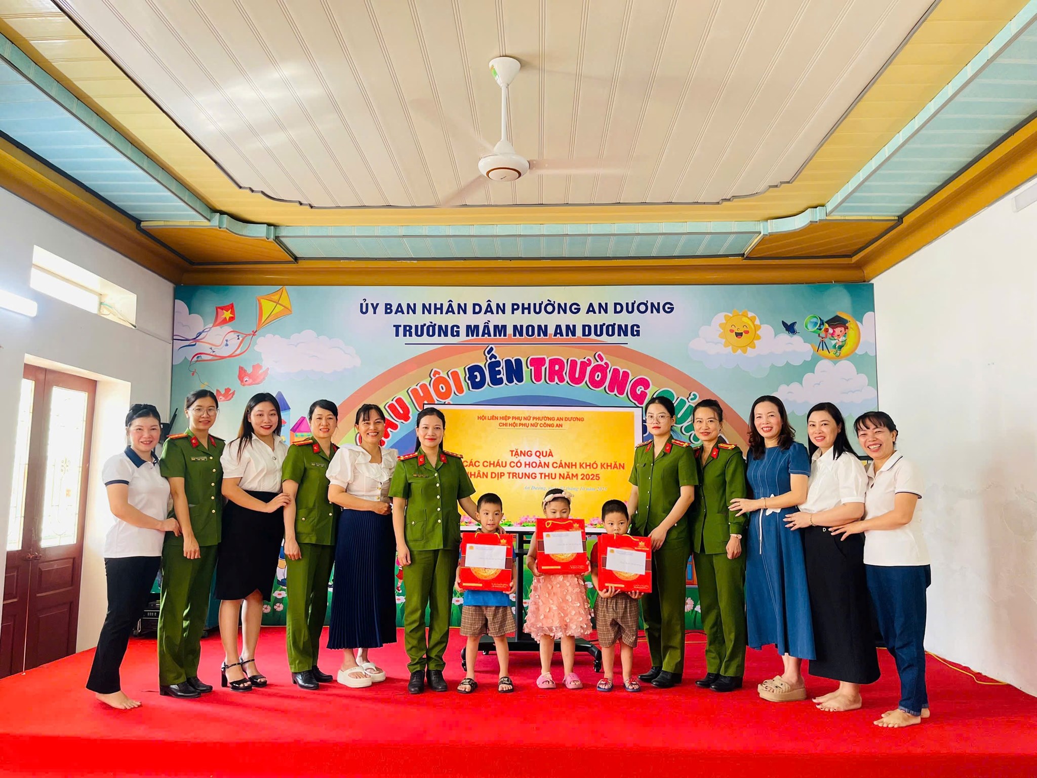 Hội phụ nữ Công an phường An Dương tặng 30 xuất quà cho 30 cháu nhân dịp Tết Trung Thu