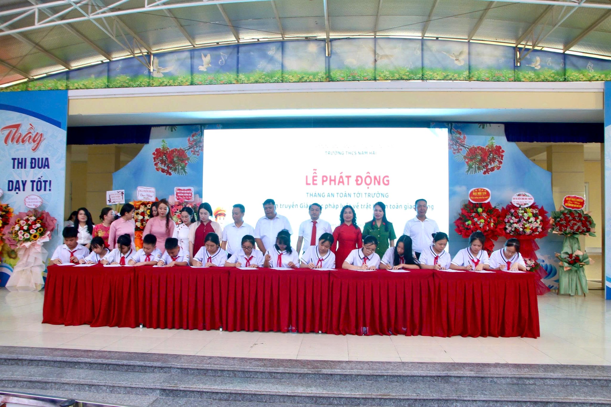 Thực hiện “Tháng cao điểm bảo đảm an toàn giao thông cho học sinh đến trường - Tháng 9”, sáng ngày 5/9/2025, Công an phường Đông Hải phối hợp với Trường THCS Nam Hải tổ chức buổi tuyên truyền về pháp luật an toàn giao thông cho 35 cán bộ, giáo viên, nhân viên và 680 học sinh của nhà trường.