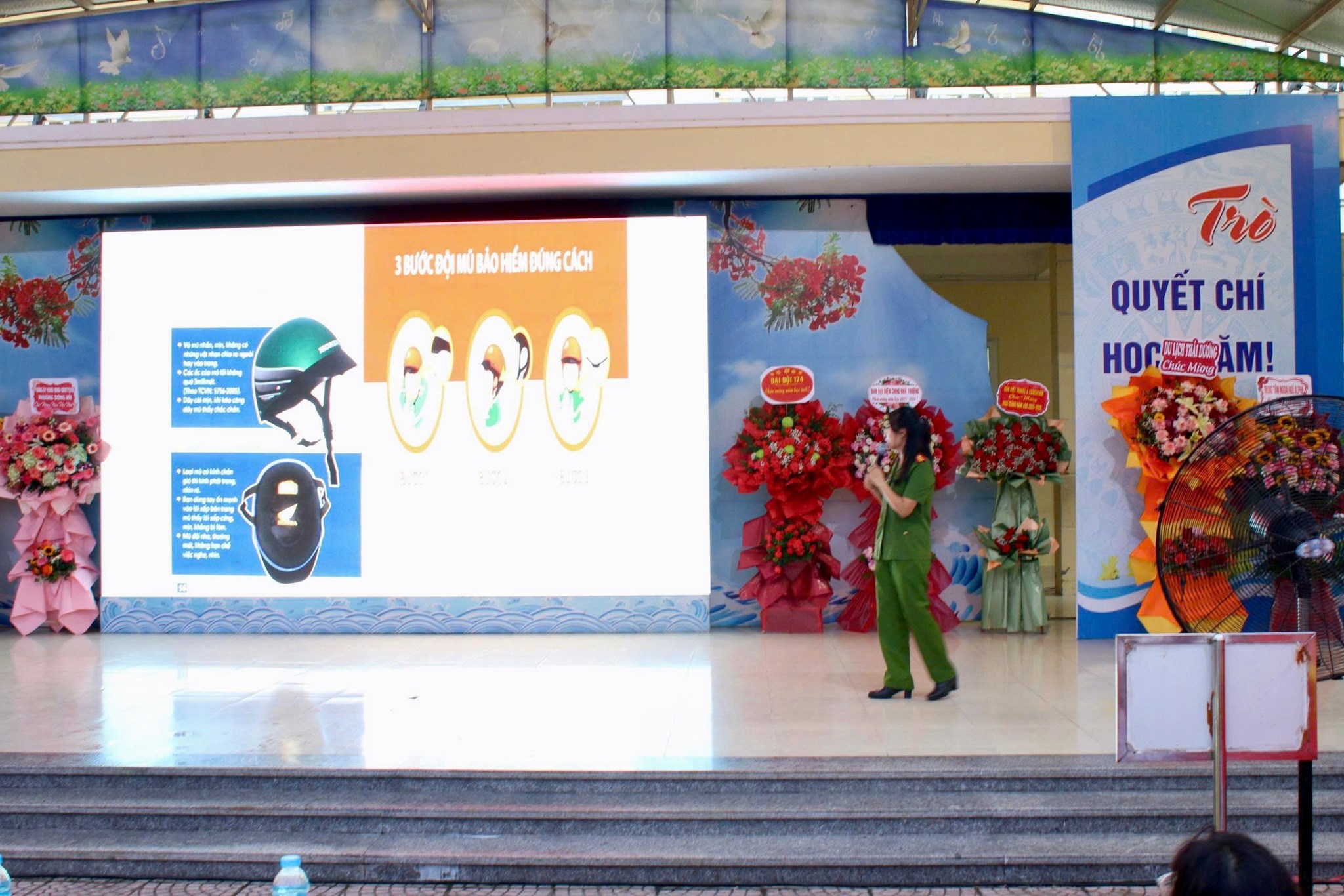 Với hình thức trao đổi trực tiếp, kết hợp giao lưu hỏi - đáp sinh động, học sinh Trường THCS Nam Hải đã hào hứng tham gia, mạnh dạn trả lời các câu hỏi tình huống. Qua đó, các em không chỉ tiếp thu kiến thức một cách chủ động mà còn nâng cao nhận thức, ý thức tự giác khi tham gia giao thông.