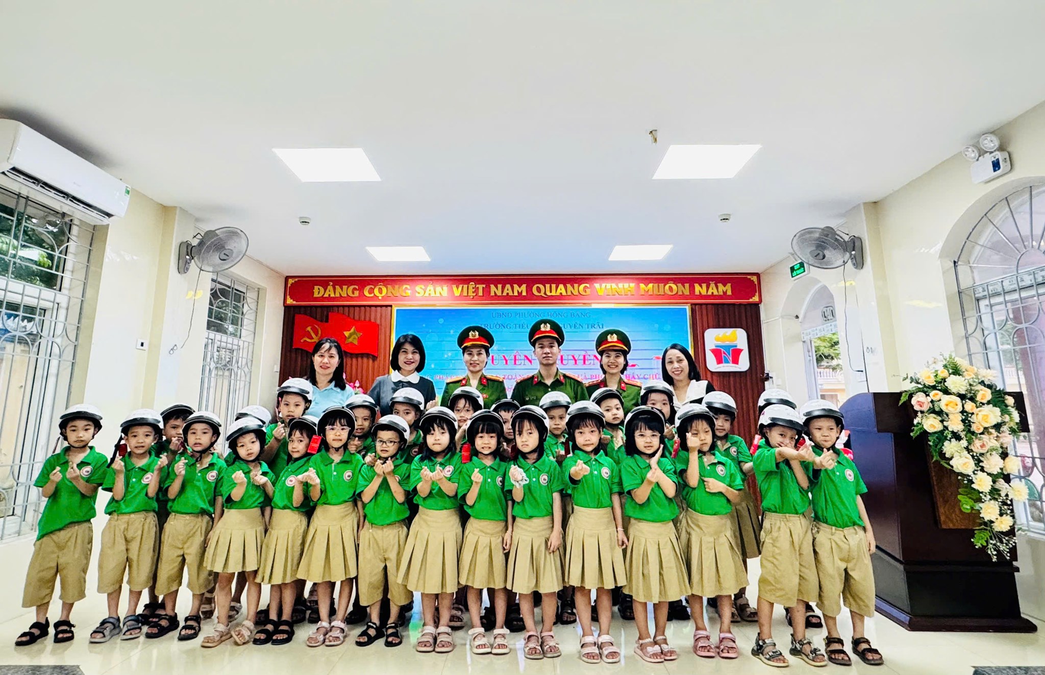 Nhằm nâng cao nhận thức pháp luật và kỹ năng sống cho học sinh, cán bộ, giáo viên trên địa bàn, chiều ngày 15/10/2025, Công an phường Hồng Bàng tổ chức tuyên truyền pháp luật, an toàn giao thông và phòng cháy chữa cháy cho 428 học sinh và 37 cán bộ, giáo viên của trường Tiểu học Nguyễn Trãi.