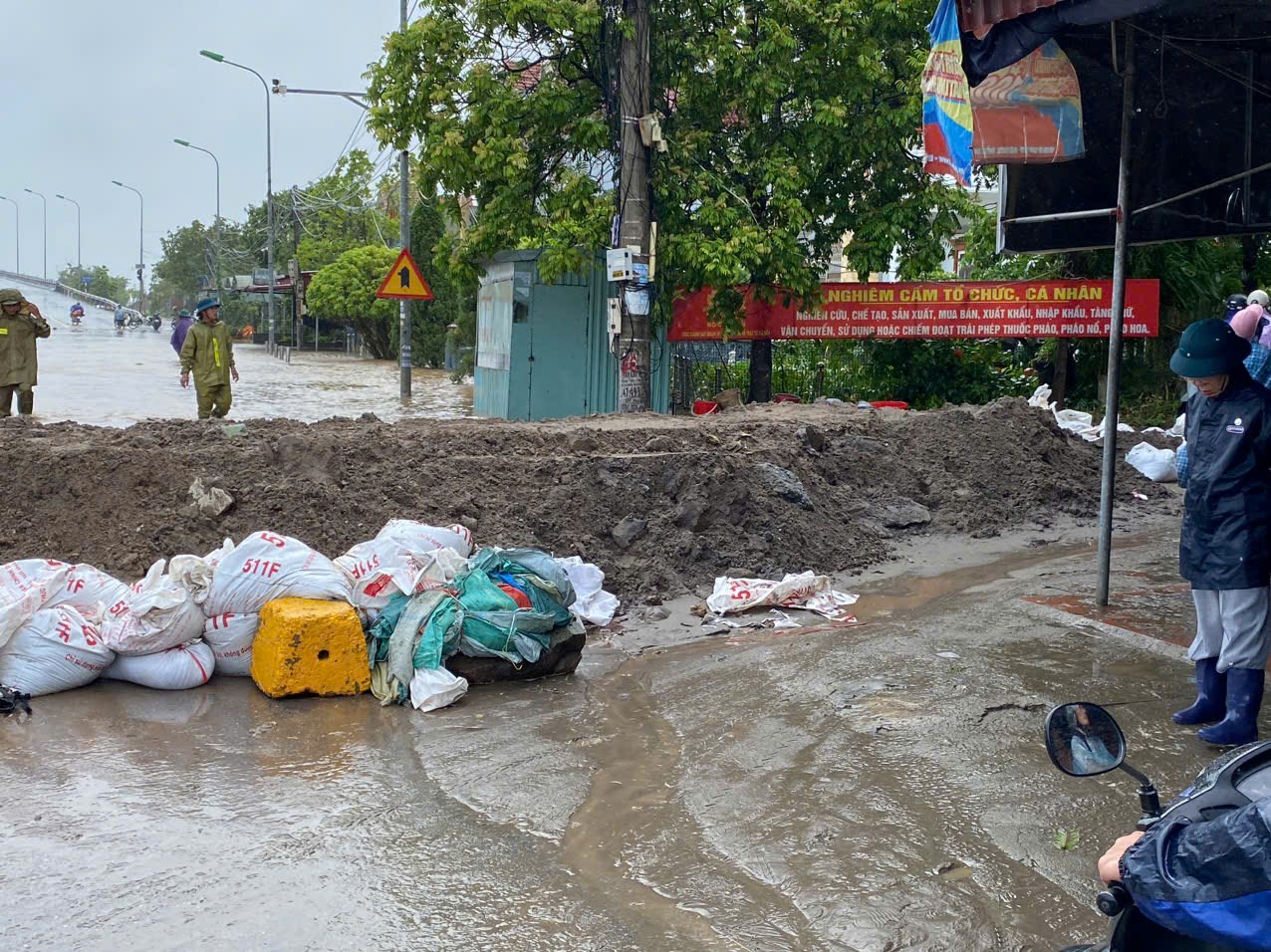 Sau khi xem xét tình hình, UBND xã An Hưng quyết định đắp ngăn các bao cát tại vị trí chân cầu Khuể; Tỉnh lộ 354 để tránh nước tràn vào các hộ dân khu vực xã Chiến Thắng (cũ) và đồng màu. Xét thấy tình hình khẩn cấp, Công an xã An Hưng đã liên lạc, phối hợp với Trạm cảnh sát giao thông Quang Trung; Trạm giao thông đường thủy số 2; Công an xã Tiên Lãng; Công an xã An Khánh thực hiện phân luồng giao thông, tạm dừng các phương tiện qua cầu Khuể để thực hiện công tác đắp bao cát ngăn nước. Hiện chưa có thiệt hại về người và tài sản.