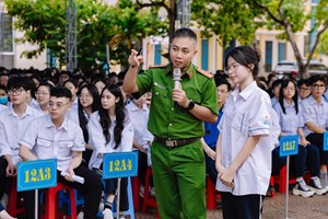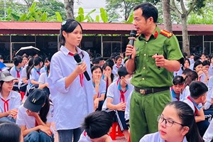 Tại buổi tuyên truyền, các em học sinh đã được Thiếu tá Đặng Hữu Tâm - cán bộ Trạm CSGT Quang Trung - Phòng CSGT CATP phổ biến những kiến thức cơ bản về Luật Trật tự an toàn giao thông đường bộ, kỹ năng sang đường an toàn, cách đội mũ bảo hiểm đúng quy chuẩn… bằng hình thức minh họa trực quan, sinh động.