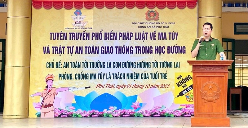 Sáng 01/10/2025, Công an xã Phú Thái kết hợp với Đội CSGT số 5 (Phòng CSGT – CATP) tổ chức buổi tuyên truyền, phổ biến pháp luật về TTATGT tại Trường THPT Kim Thành. Buổi tuyên truyền thu hút 35 cán bộ, giáo viên và hơn 1000 học sinh Trường THPT Kim Thành.