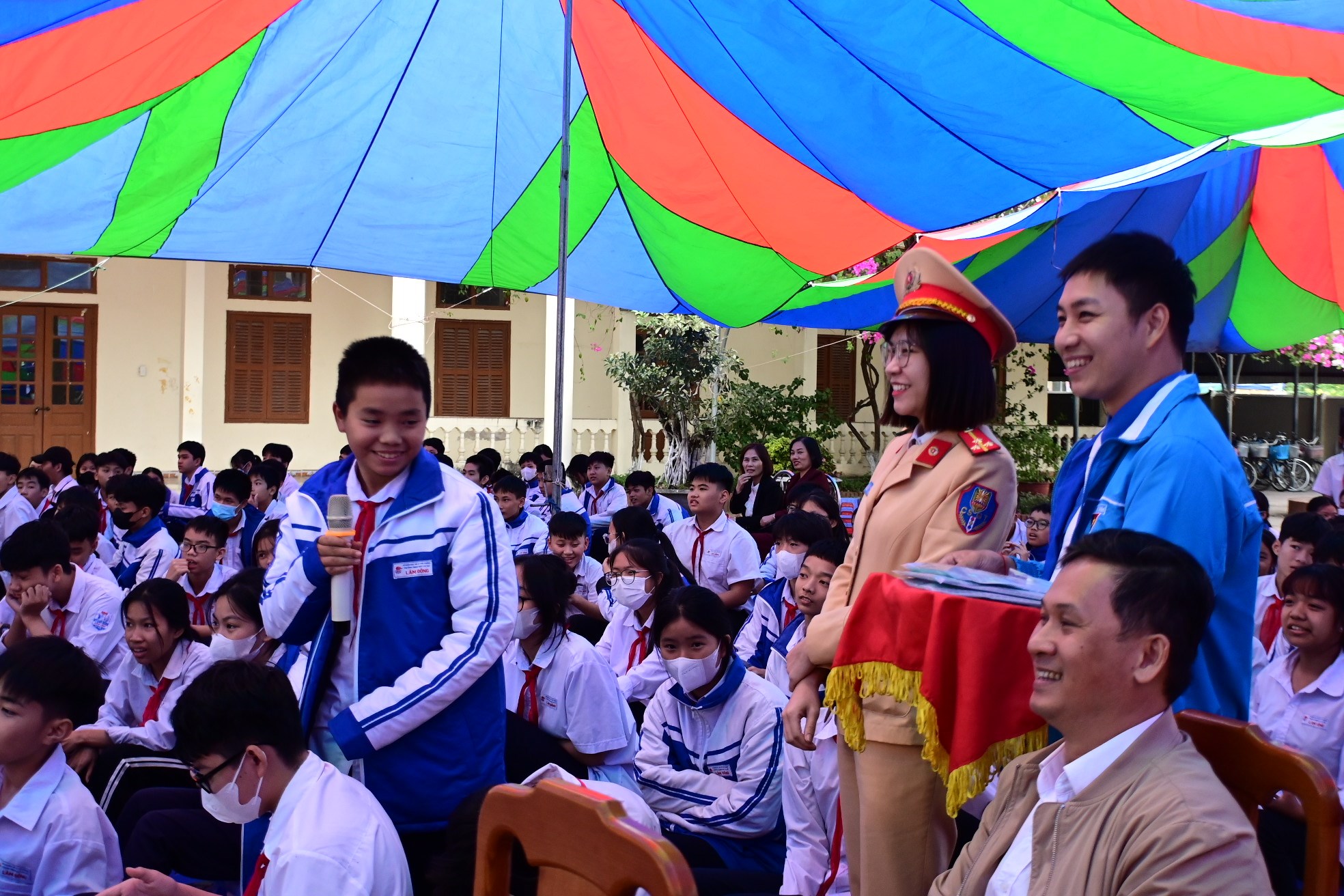 Học sinh trường THCS Lâm Động tích cực tham gia trả lời câu hỏi hiểu biết về các loại biển báo