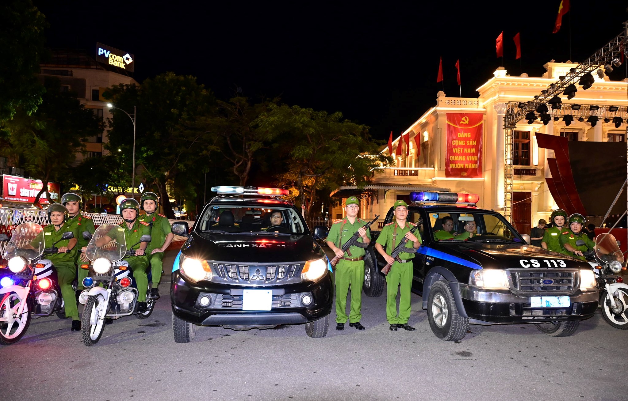 Đêm 01/9/2025, lực lượng Cảnh sát phản ứng nhanh (Phòng Cảnh sát quản lý hành chính về trật tự xã hội -CATP) tổ chức tuần tra vũ trang đảm bảo an ninh, trật tự dịp Quốc khánh 2/9.