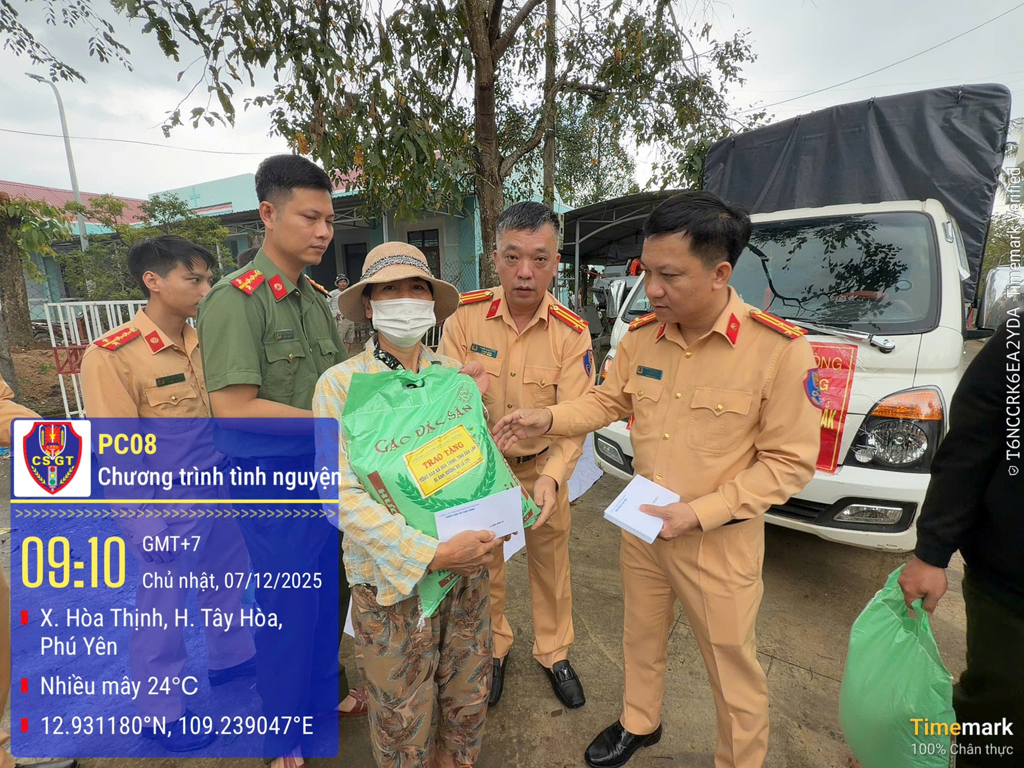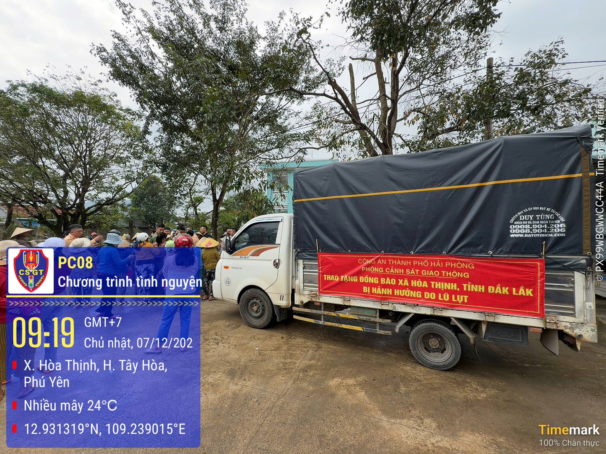 Ngày 07/12/2025, đại diện Lãnh đạo, chỉ huy, Đoàn thanh niên, cán bộ chiến sĩ Phòng Cảnh sát giao thông Công an thành phố Hải Phòng đã đến xã Hoà Thịnh, tỉnh Đăk Lăk mang theo những phần quà động viên, chia sẻ của tập thể Phòng Cảnh sát giao thông gửi đến bà con Nhân dân bị thiệt hại sau trận lũ lịch sử tháng 11 vừa qua.