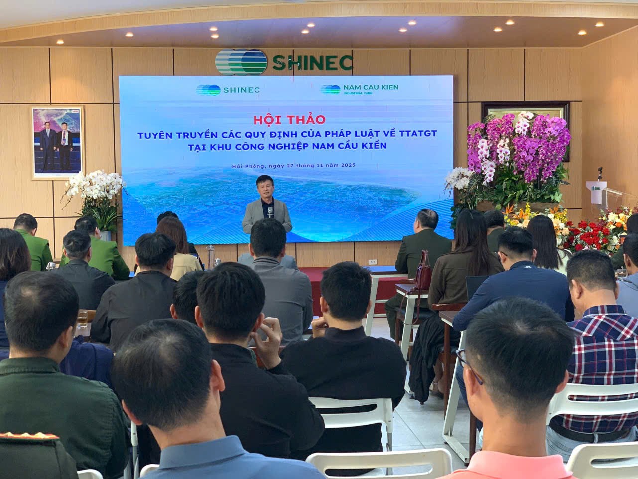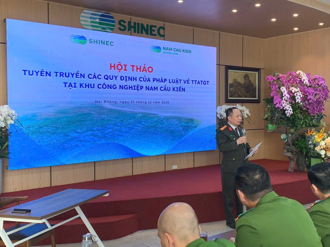 Chiều ngày 27/11/2025 Phòng Cảnh sát giao thông, Phòng An ninh kinh tế - Công an thành phố phối hợp với Công ty cổ phần Shinec - đơn vị quản lý khu công nghiệp Nam Cầu Kiền, Hải Phòng tổ chức tập huấn, tuyên truyền an toàn giao thông, hướng dẫn kỹ năng lái xe an toàn cho đại diện các doanh nghiệp, cán bộ ban quản lý làm việc tại khu công nghiệp Nam Cầu Kiền, Hải Phòng.