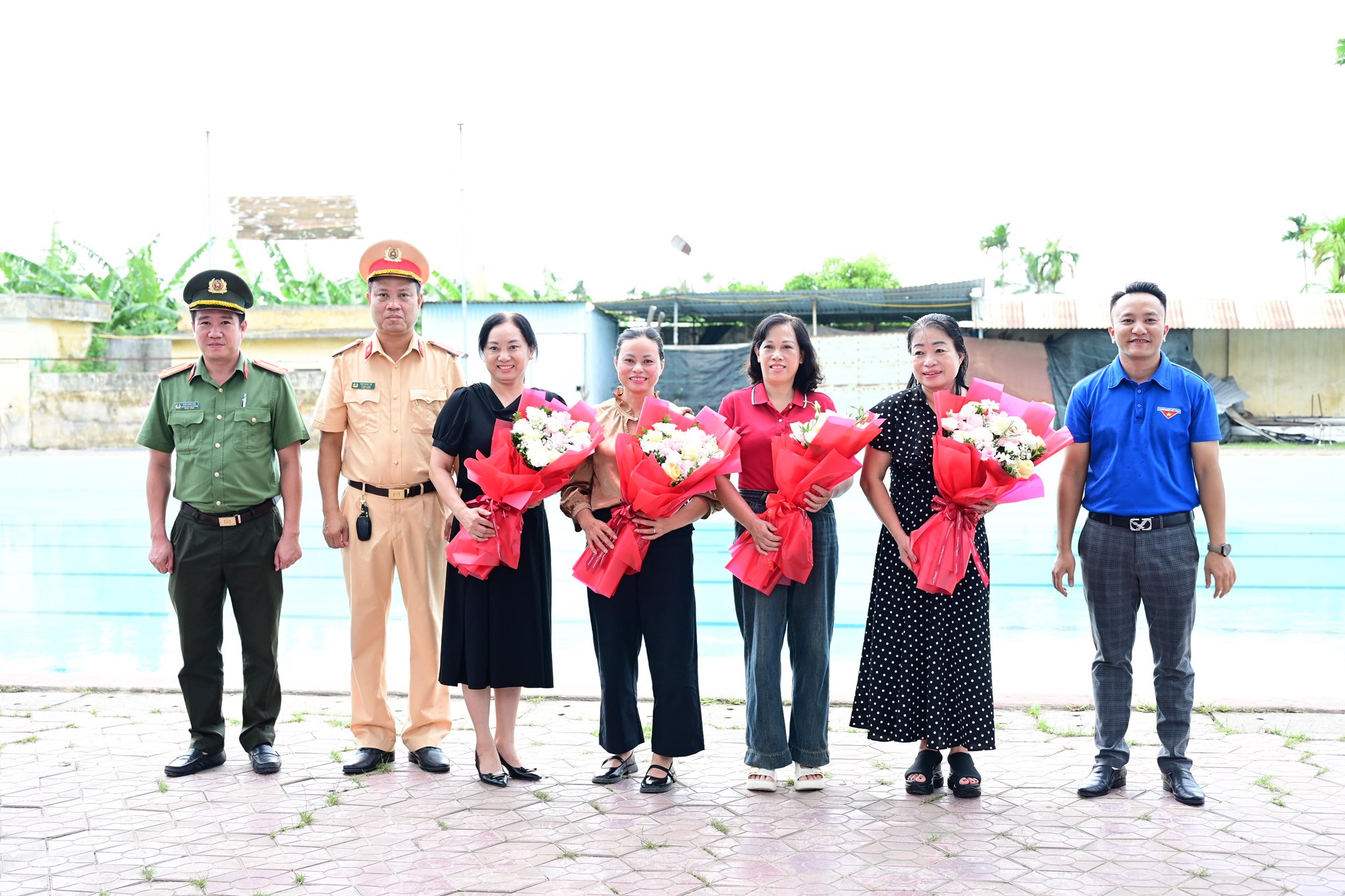 Tặng hoa các thầy cô giáo phối hợp tổ chức lớp dạy bơi