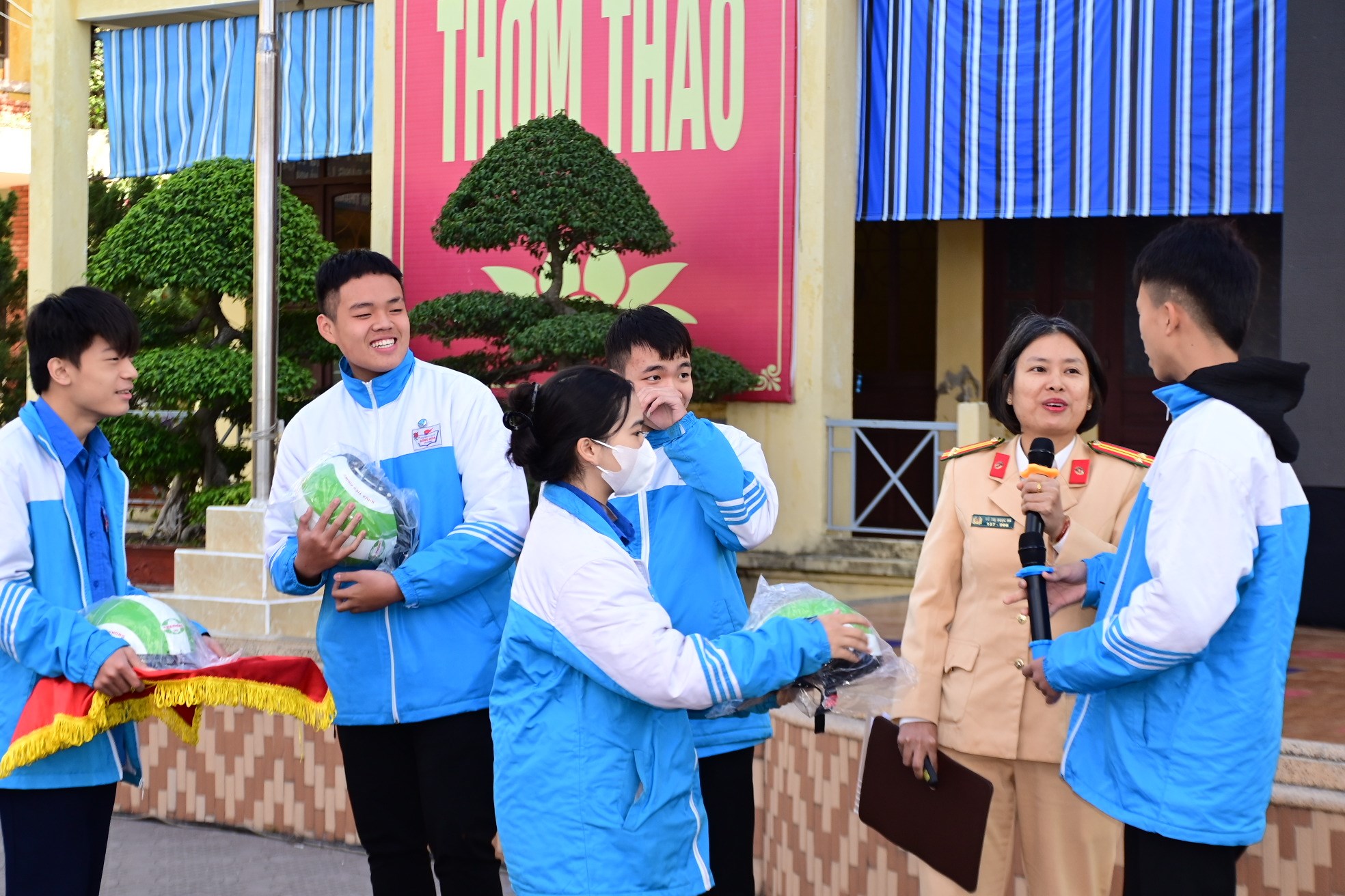 Qua phần tuyên truyền, các em học sinh cũng hăng hái tham gia giao lưu, tìm hiểu các kiến thức của pháp luật, trang bị thêm cho mình và bạn những kiến thức còn thiếu qua trao đổi, lắng nghe và đọc trên những tờ rơi, cẩm nang tuyên truyền. Những chiếc mũ bảo hiểm đạt chuẩn là những phần quà ý nghĩa, thiết thực mà CBCS Phòng CSGT trao tặng cho các em với thông điệp: luôn đội mũ bảo hiểm khi điều khiển, ngồi trên xe mô tô, xe gắn máy, xe máy điện vì an toàn của bản thân, gia đình và cộng đồng.