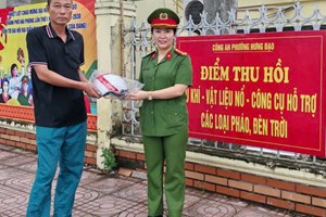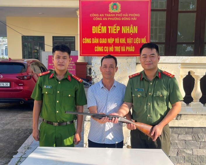 Qua đó, ngày 08/10/2025, ông Trần Đình Bảo, sinh năm 1961, trú tại Tổ dân phố Phương Lưu 5, phường Đông Hải đã đến giao nộp 01 khẩu súng tự chế bắn đạn hoa cải. Công an phường đã tổ chức tiếp nhận, lập biên bản thu hồi theo quy định. Đồng thời, Công an phường tặng bình bột chữa cháy để khuyến khích công dân. Thời gian tới, Công an phường Đông Hải tiếp tục kêu gọi toàn dân tăng cường phối hợp, trao đổi thông tin để làm tốt công tác phòng ngừa, phát hiện, đấu tranh với tội phạm, vi phạm pháp luật về vũ khí, vật liệu nổ, công cụ hỗ trợ và pháo.