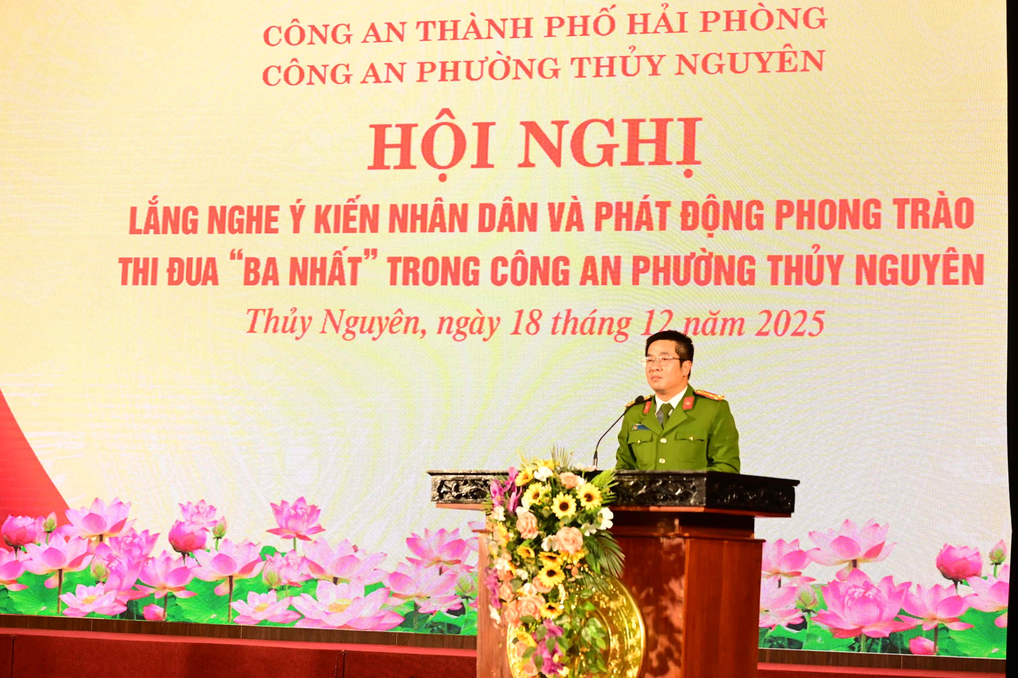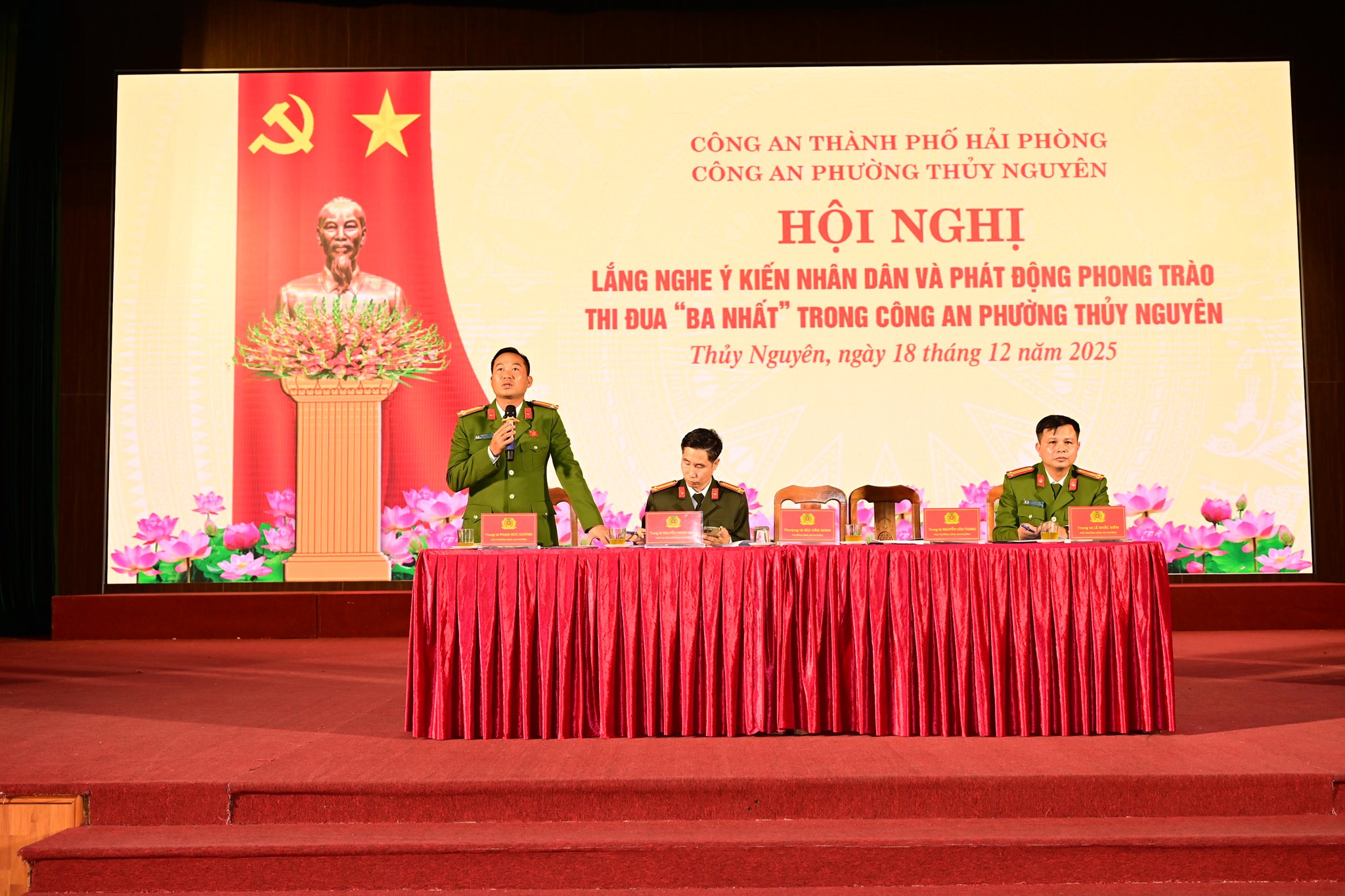 Chiều ngày 18/12/2025, Công an phường Thủy Nguyên tổ chức Hội nghị diễn đàn “Lắng nghe ý kiến Nhân dân tại địa bàn cơ sở”, gắn với phát động phong trào thi đua “Ba nhất”.