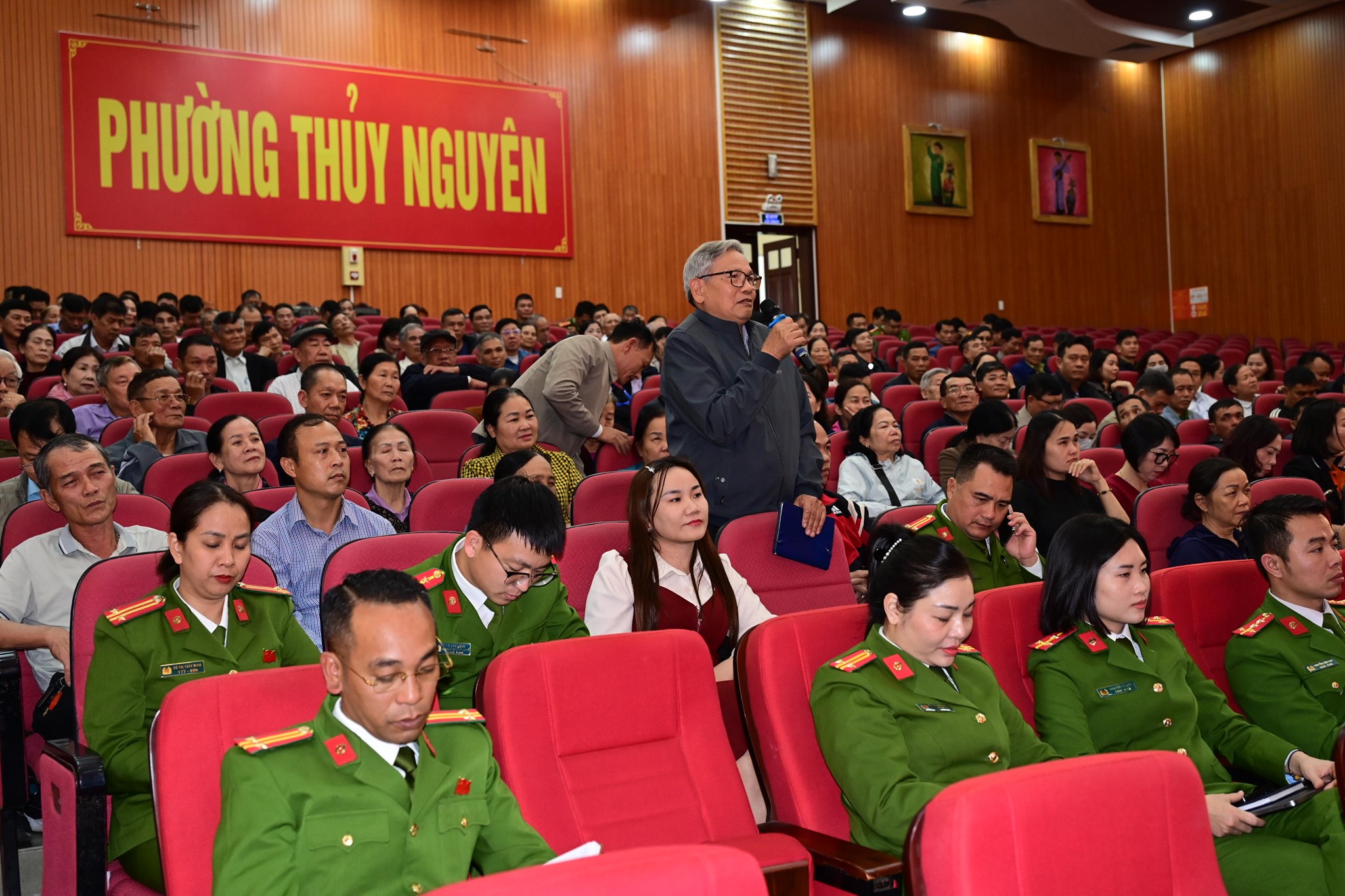 Nhân dân tham gia ý kiến với Công an phường Thuỷ Nguyên