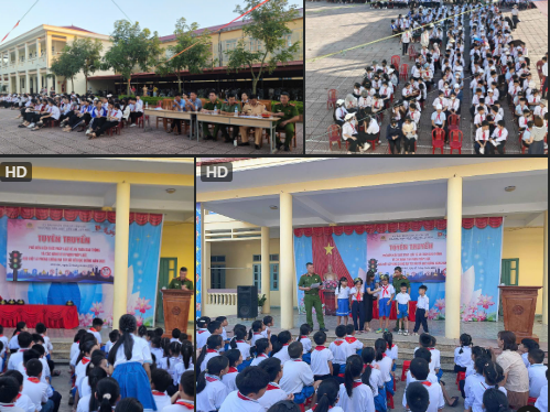 Công an xã Vĩnh Am tuyên truyền pháp luật về an toàn giao thông, phòng chống ma tuý và thuốc lá điện tử học đường tại 8 trường học