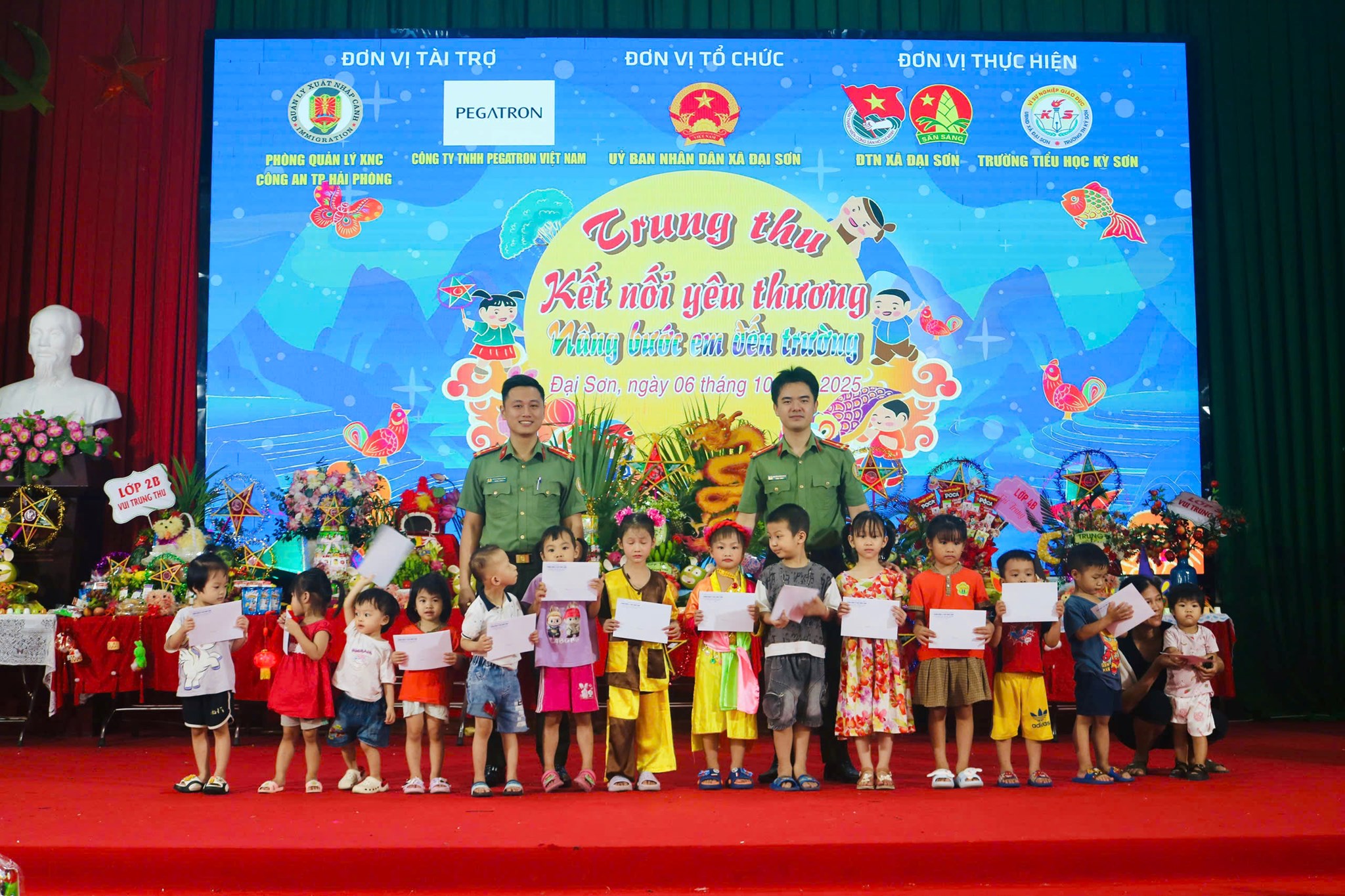 Nhân dịp Tết Trung thu năm 2025, Phòng Quản lý xuất nhập cảnh - CATP Hải Phòng phối hợp với UBND xã Đại Sơn, thành phố Hải Phòng tổ chức chương trình “Trung thu kết nối yêu thương” cho các cháu thiếu nhi trên địa bàn xã.