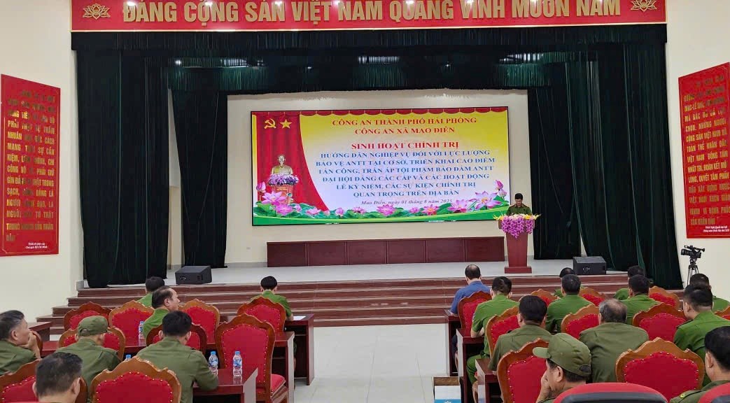 Chiều ngày 01/8/2025, tại Hội trường UBND xã Mao Điền, Công an xã Mao Điền đã tổ chức buổi sinh hoạt chính trị nhằm triển khai cao điểm tấn công, trấn áp tội phạm, bảo đảm an ninh trật tự (ANTT) tại địa phương. Buổi sinh hoạt còn kết hợp hướng dẫn nghiệp vụ cho lực lượng bảo vệ ANTT tại cơ sở, chuẩn bị lực lượng sẵn sàng bảo vệ tuyệt đối an toàn cho Đại hội Đảng các cấp, các hoạt động lễ kỷ niệm và các sự kiện chính trị quan trọng diễn ra trên địa bàn thành phố. Dự buổi sinh hoạt có đồng chí Đoàn Đình Tuyến – Bí thư Đảng ủy, Chủ tịch HĐND xã, cùng các đồng chí chỉ huy Công an xã, cán bộ chiến sĩ thuộc các Tổ nghiệp vụ và lực lượng tham gia Tổ bảo vệ ANTT tại cơ sở.