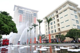 Thực tập phương án chữa cháy và CNCH cấp thành phố năm 2025 phối hợp nhiều lực lượng tại Trường Đại học Y Dược Hải Phòng