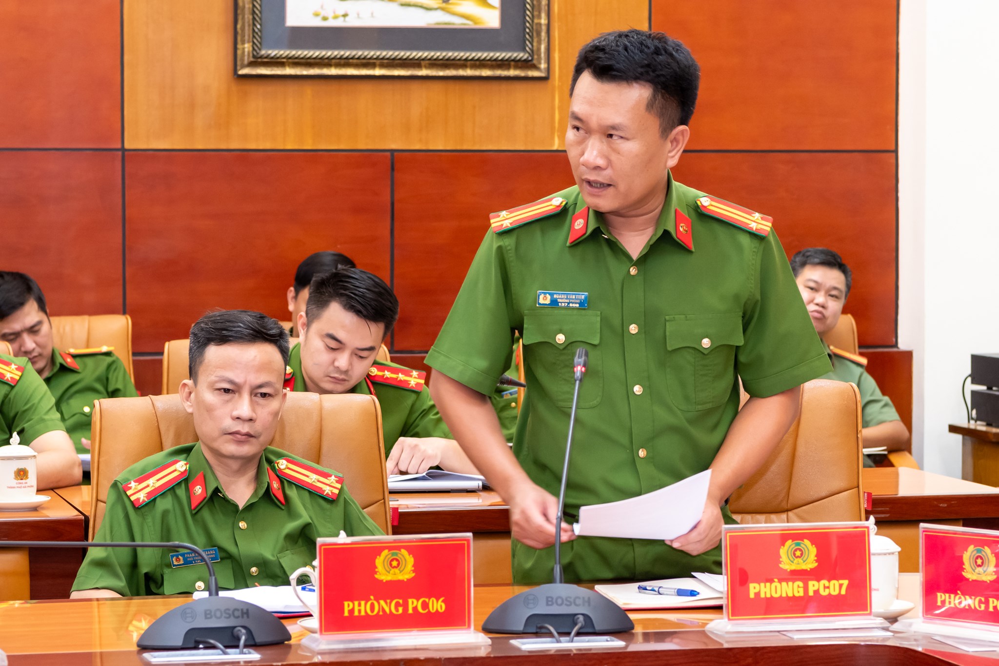 Đại tá Phạm Viết Dũng, Phó Bí thư Đảng ủy, Phó giám đốc CATP phát biểu chỉ đạo hội nghị.