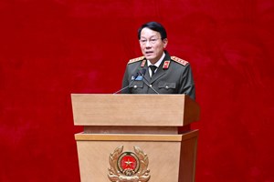 Trung tướng Nguyễn Thanh Tùng, Giám đốc Công an TP Hà Nội phát biểu tại Hội nghị
