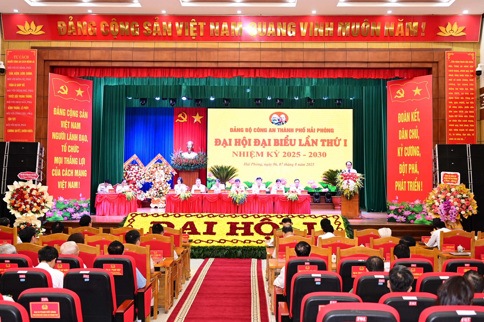 Trong 2 ngày 6, 7/8, Đảng bộ CATP Hải Phòng tổ chức Đại hội đại biểu lần thứ I, nhiệm kỳ 2025 – 2030. Đến dự và chỉ đạo Đại hội có các đồng chí: Lê Tiến Châu, Ủy viên TW Đảng, Bí thư Thành ủy, Trưởng đoàn ĐBQH Hải Phòng; Thượng tướng Nguyễn Văn Long, Ủy viên BTV Đảng ủy CATW, Thứ trưởng Bộ Công an; Lê Văn Hiệu, Phó Bí thư Thành ủy, Chủ tịch HĐND thành phố; Lê Ngọc Châu, Phó Bí thư Thành ủy, Chủ tịch UBND thành phố; Phạm Văn Lập, Phó Bí thư Thành ủy, Chủ tịch Ủy ban MTTQ VN thành phố; đại diện lãnh đạo Ban Tổ chức Trung ương, Ủy ban kiểm tra Trung ương; các đồng chí Ủy viên Ban Thường vụ Thành ủy; các đồng chí lãnh đạo các Cục nghiệp vụ Bộ Công an; lãnh đạo các Ban của Thành ủy, các sở, ban, ngành, lực lượng vũ trang thành phố Hải Phòng; các đồng chí nguyên lãnh đạo Công an thành phố, Cảnh sát PCCC&CNCH thành phố qua các thời kỳ; Hội Cựu CAND thành phố…