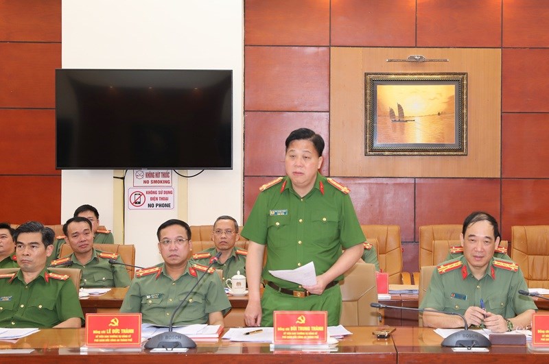 Đại tá Bùi Trung Thành, Ủy viên BTV Đảng ủy CATP, Phó giám đốc CATP phát biểu ý kiến tại hội nghị