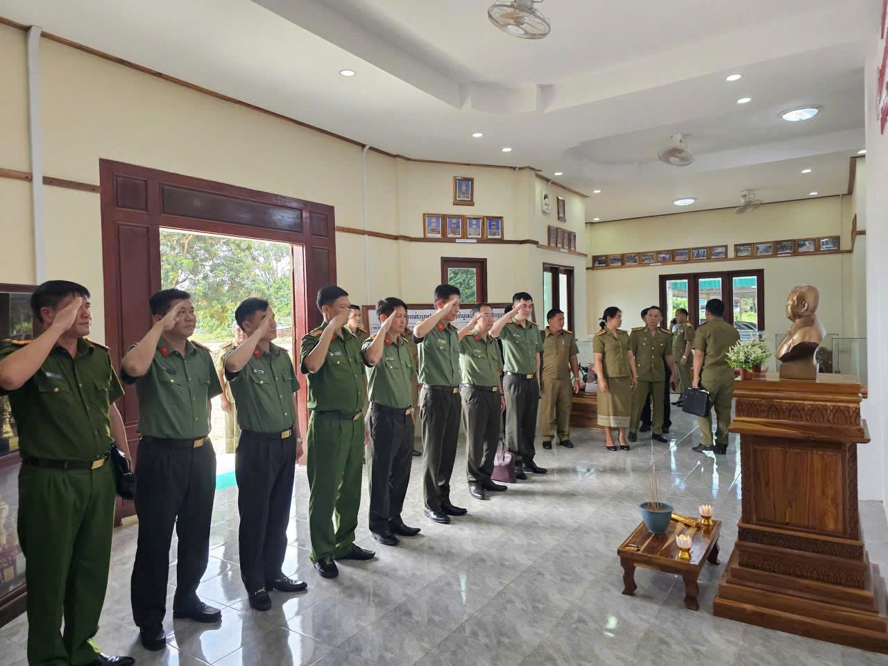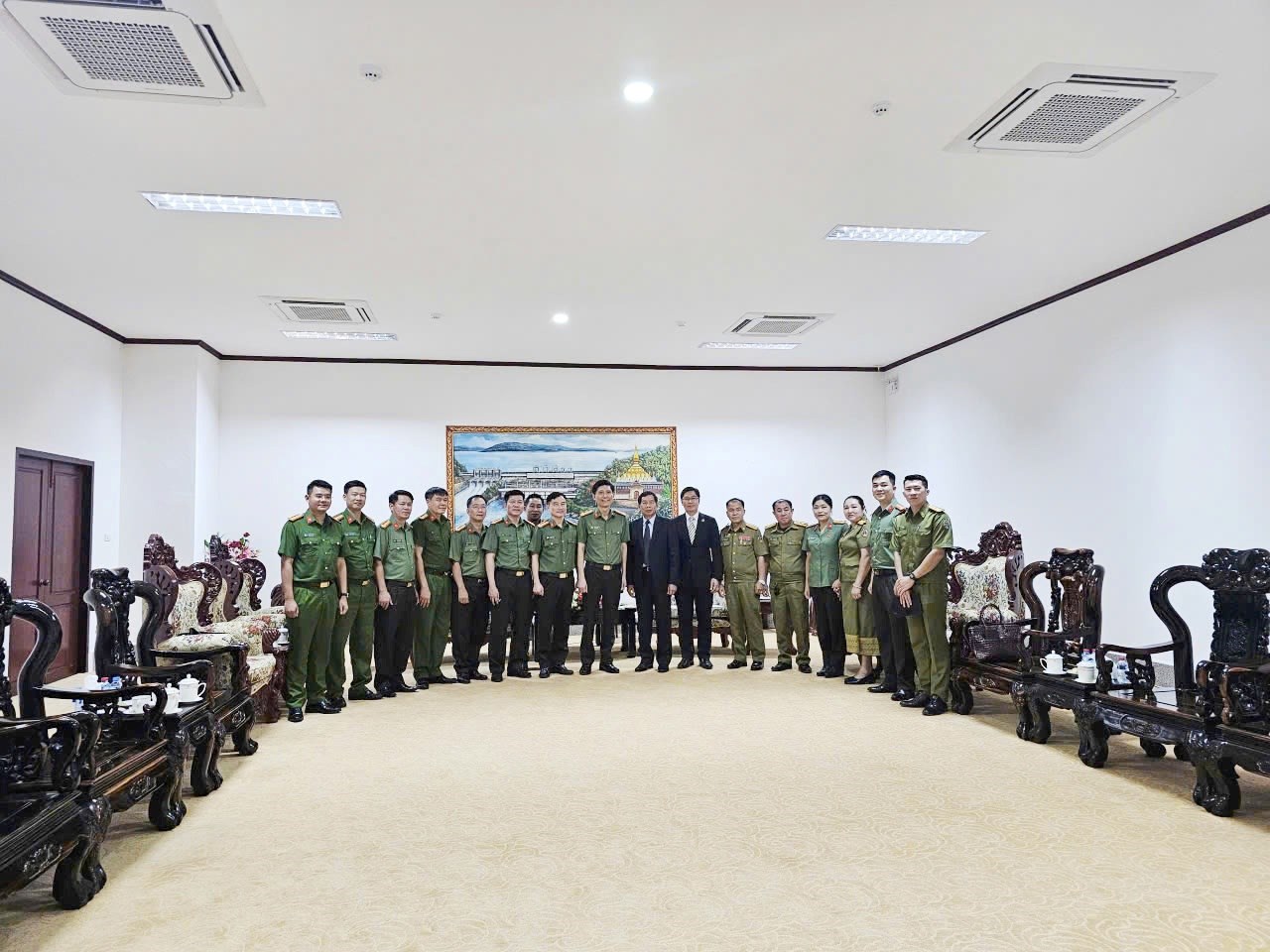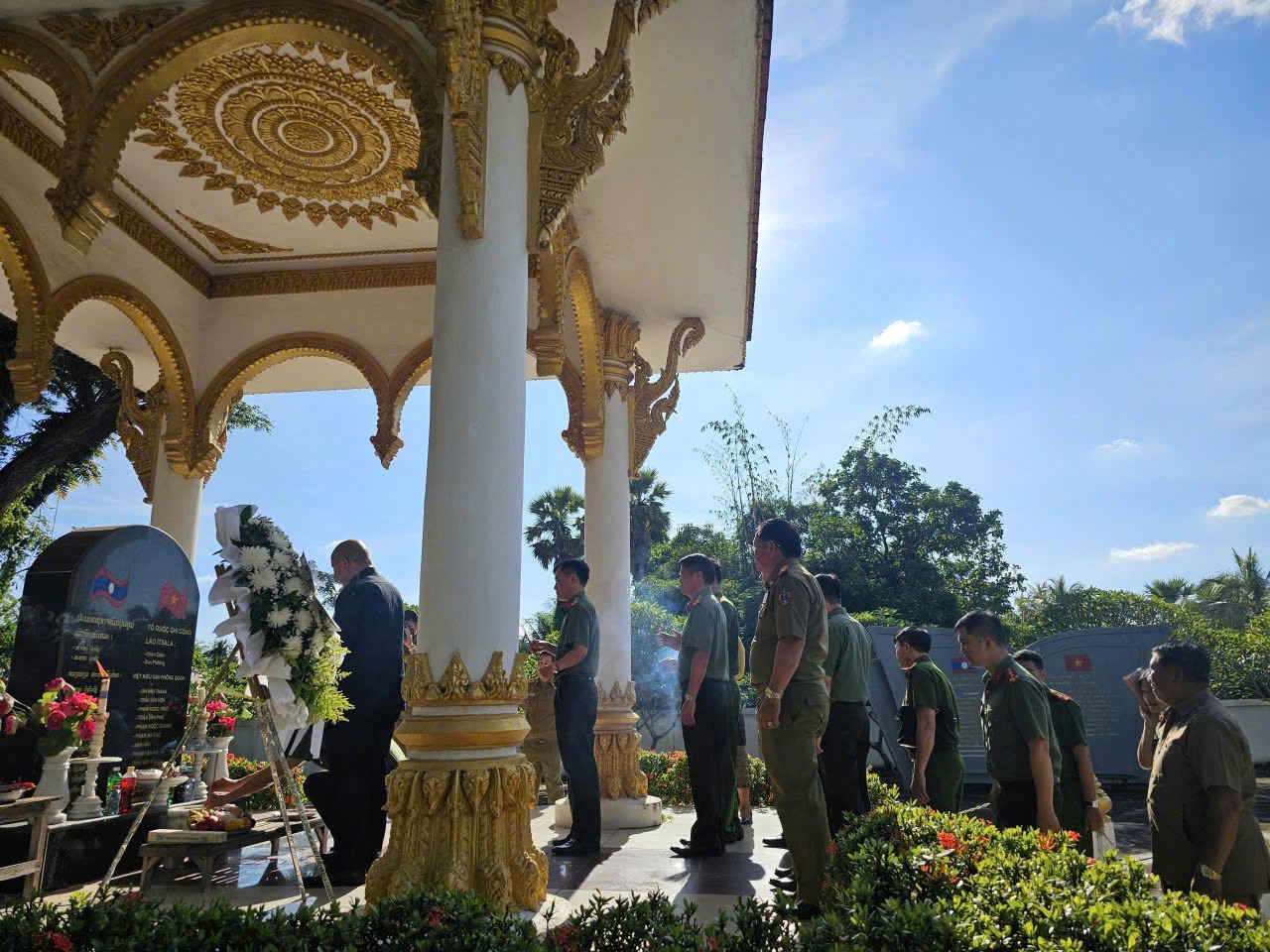 Nhân dịp này, Đoàn công tác đã đến chào xã giao đồng chí Khăm-păn Sít-thi-đăm-pha, Ủy viên Ban Chấp hành Trung ương Đảng Nhân dân Cách mạng Lào, Bí thư, Tỉnh trưởng tỉnh Viêng Chăn. Đoàn cũng đã đến dâng hương tưởng niệm các chiến sĩ quân tình nguyện Việt Nam hy sinh tại huyện Thú Lá Khốm, tỉnh Viêng Chăn. Tiếp đó, Đoàn đã đến thăm và chúc sức khỏe đồng chí Thiếu tướng Thông-Khên Bun-măn, nguyên Bí thư Đảng ủy, nguyên Giám đốc Công an tỉnh Viêng Chăn.