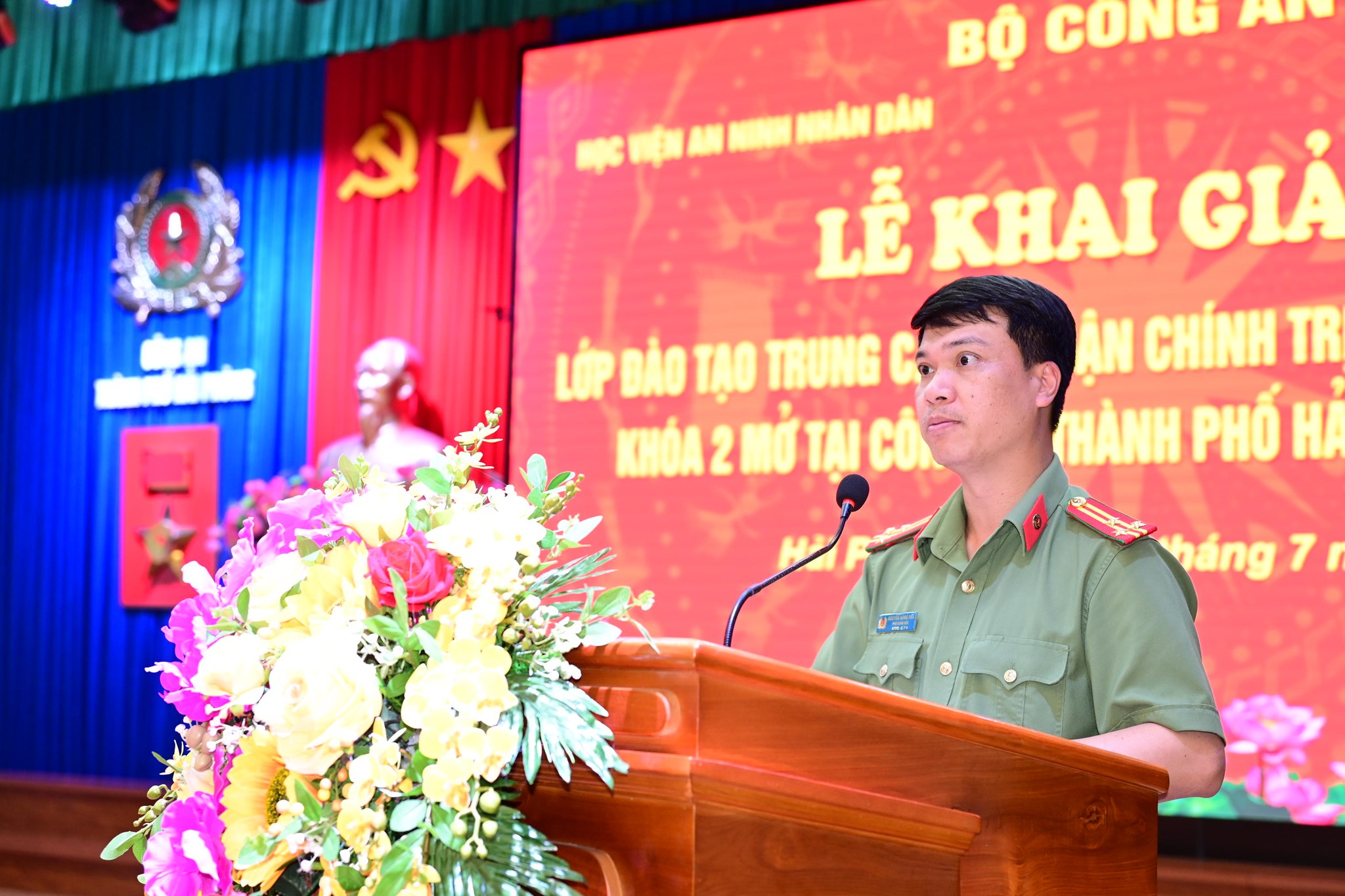 Phát biểu khai giảng lớp học, Thượng tá PGS.TS Nguyễn Hồng Thái, Phó giám đốc Học viện An ninh nhân dân đề nghị các đồng chí học viên xác định rõ động cơ, mục đích, thái độ học tập đúng đắn, chấp hành nghiêm quy chế đào tạo của Học viện; tăng cường trao đổi, chia sẻ kinh nghiệm thực tiễn trong công tác, nâng cao chất lượng học tập để vận dụng kiến thức được học vào thực tiễn công tác.