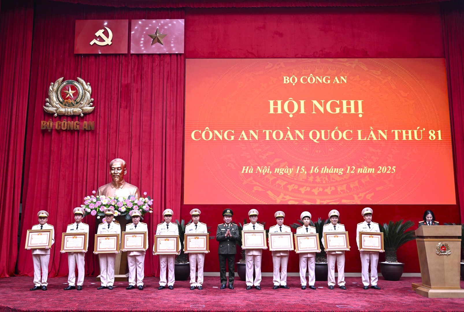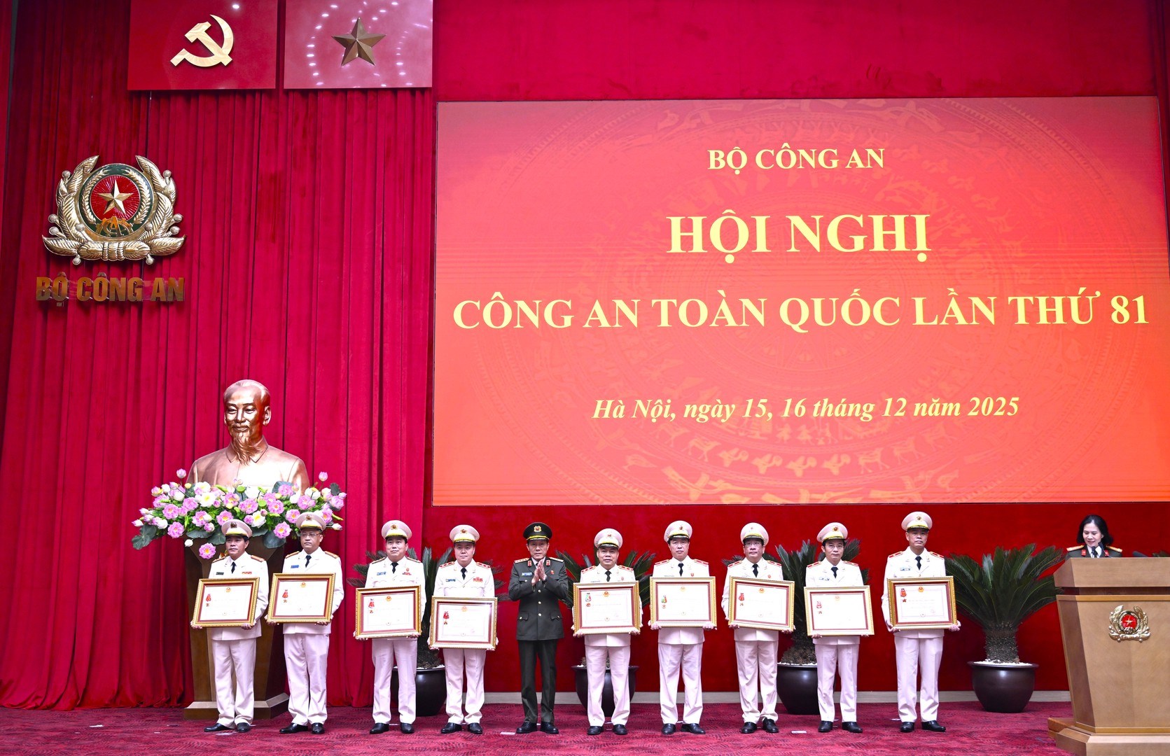 Ngày 16/12/2025, tại Hà Nội, Ban Tổ chức Hội nghị Công an toàn quốc lần thứ 81 tổ chức công bố, trao các phần thưởng, danh hiệu thi đua của Đảng, Nhà nước và Bộ Công an tặng các tập thể, cá nhân có thành tích xuất sắc trong công tác, chiến đấu.