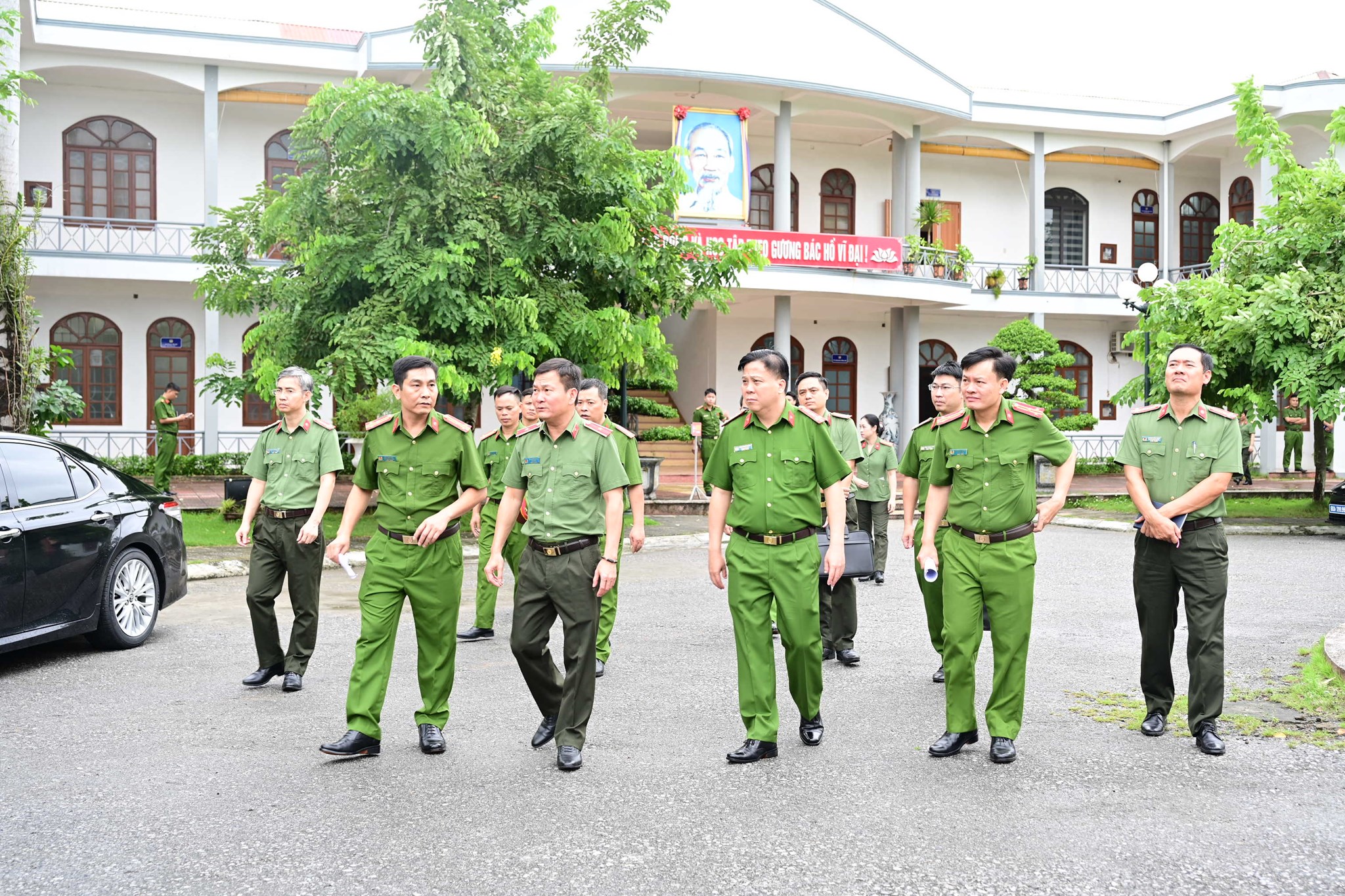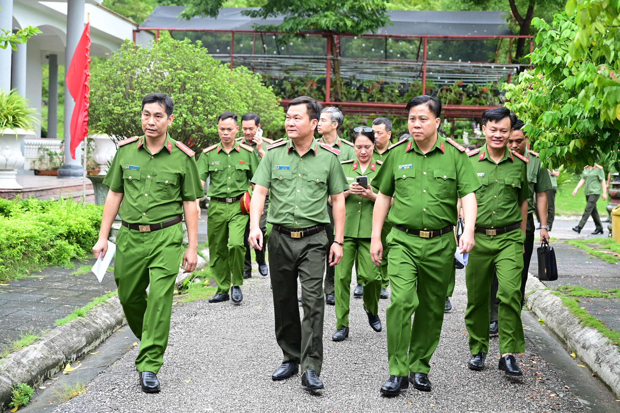 Thiếu tướng Bùi Quang Bình - Giám đốc CATP, Đại tá Bùi Trung Thành - Phó Giám đốc CATP tham quan khuôn viên Cơ sở cai nghiện ma túy số 1