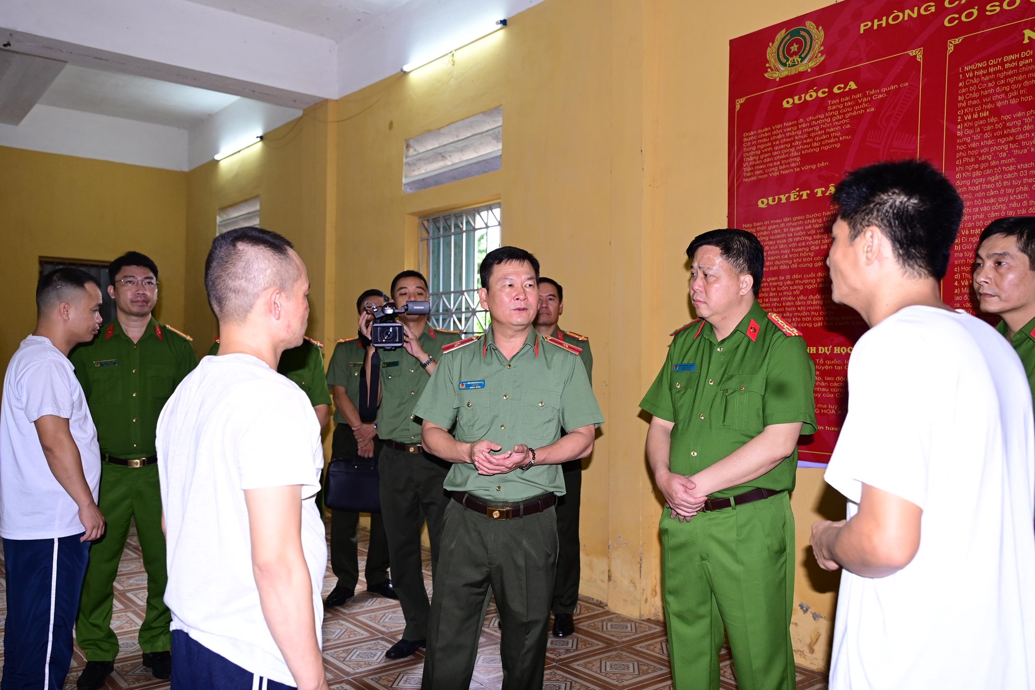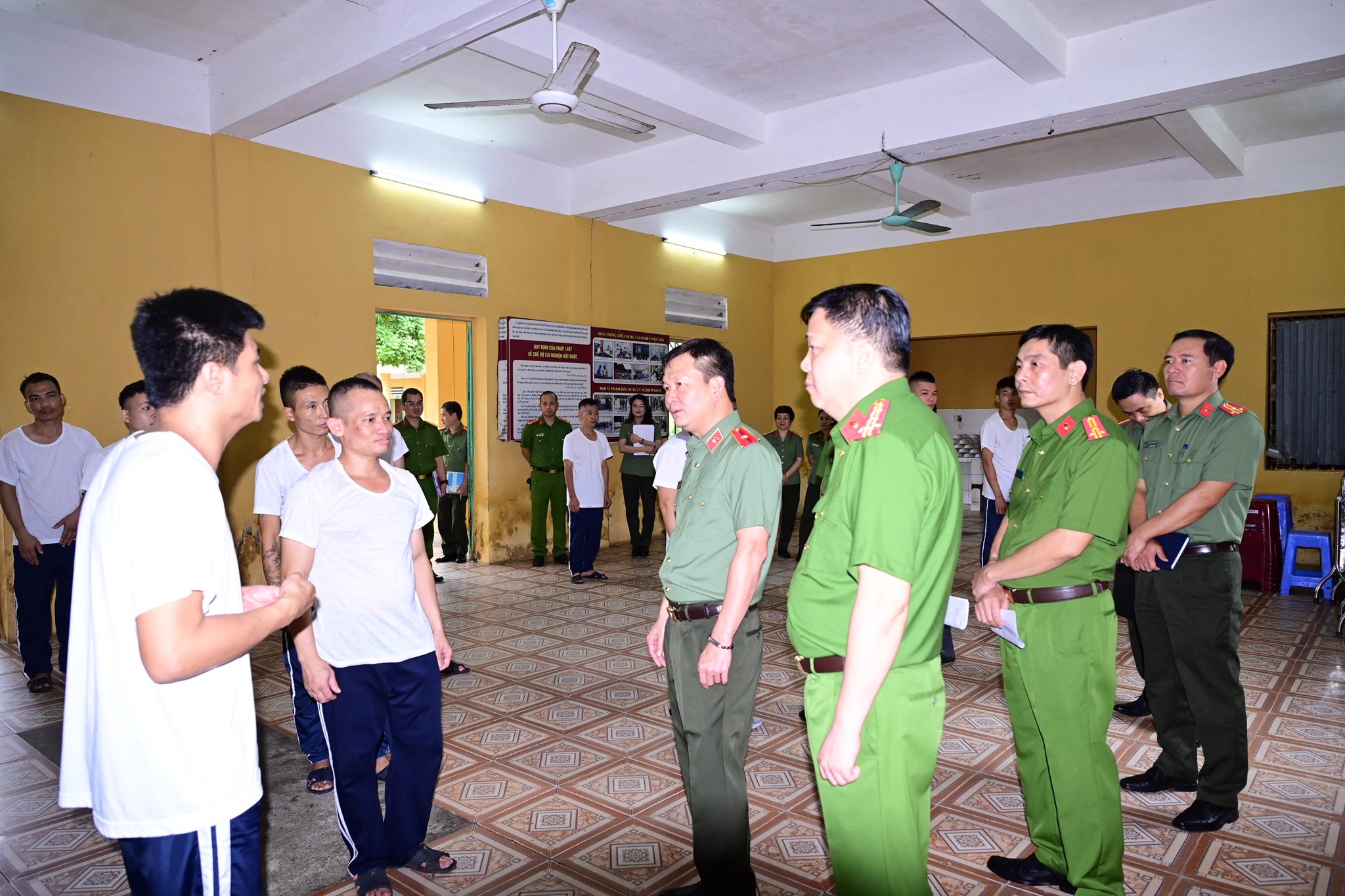 Thiếu tướng Bùi Quang Bình - Giám đốc CATP thăm hỏi các học viên tại Cơ sở cai nghiện ma túy số 1