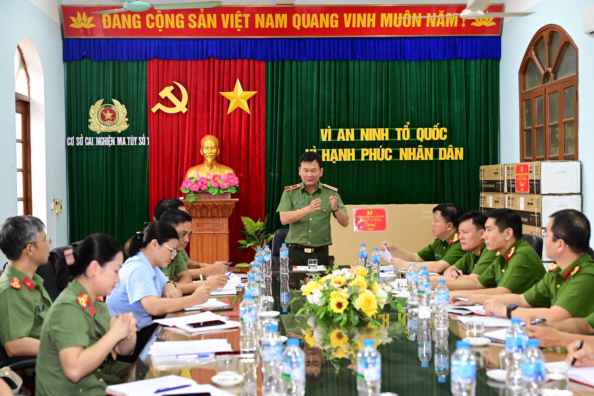 Thiếu tướng Bùi Quang Bình - Giám đốc CATP tặng quà Cơ sở cai nghiện ma túy số 1