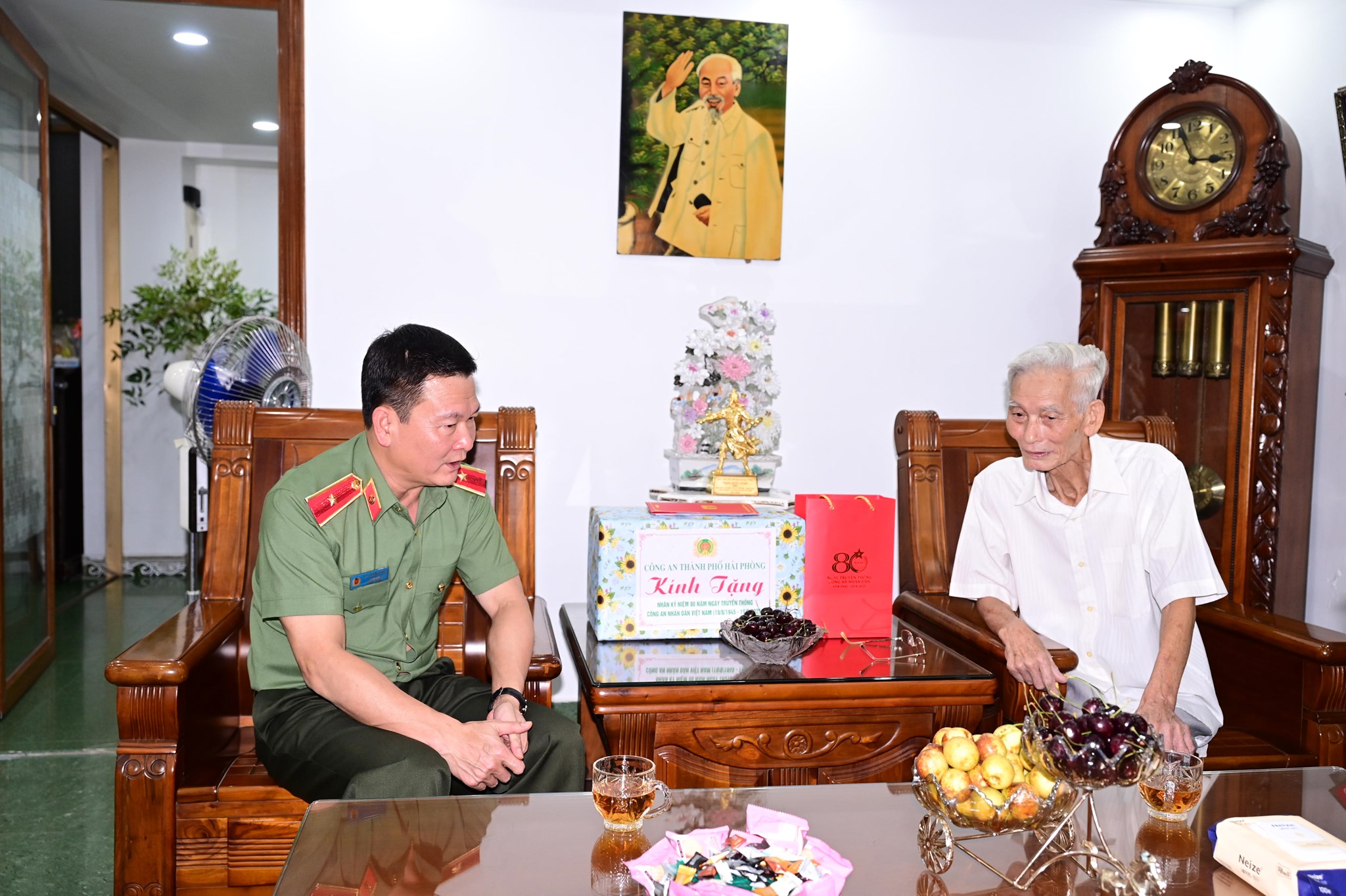 Đoàn đến thăm, tặng quà tri ân Đại tá Trần Đồn, nguyên Ủy viên BTV Thành ủy, nguyên Giám đốc CATP, Thiếu tướng Bùi Quang Bình, Giám đốc CATP thay mặt lãnh đạo CATP bày tỏ lòng biết ơn, tri ân sâu sắc những công lao, cống hiến của Đại tá Trần Đồn, nguyên Giám đốc CATP đối với sự nghiệp bảo vệ ANTT và xây dựng lực lượng CATP, đồng thời kính chúc Đại tá Trần Đồn dồi dào sức khỏe, đại lão trường thọ, tiếp tục tham gia đóng góp ý kiến quý báu về công tác bảo đảm ANTT và xây dựng lực lượng Công an Hải Phòng thật sự trong sạch, vững mạnh, chính quy, tinh nhuệ, đáp ứng yêu cầu, nhiệm vụ trong tình hình mới.