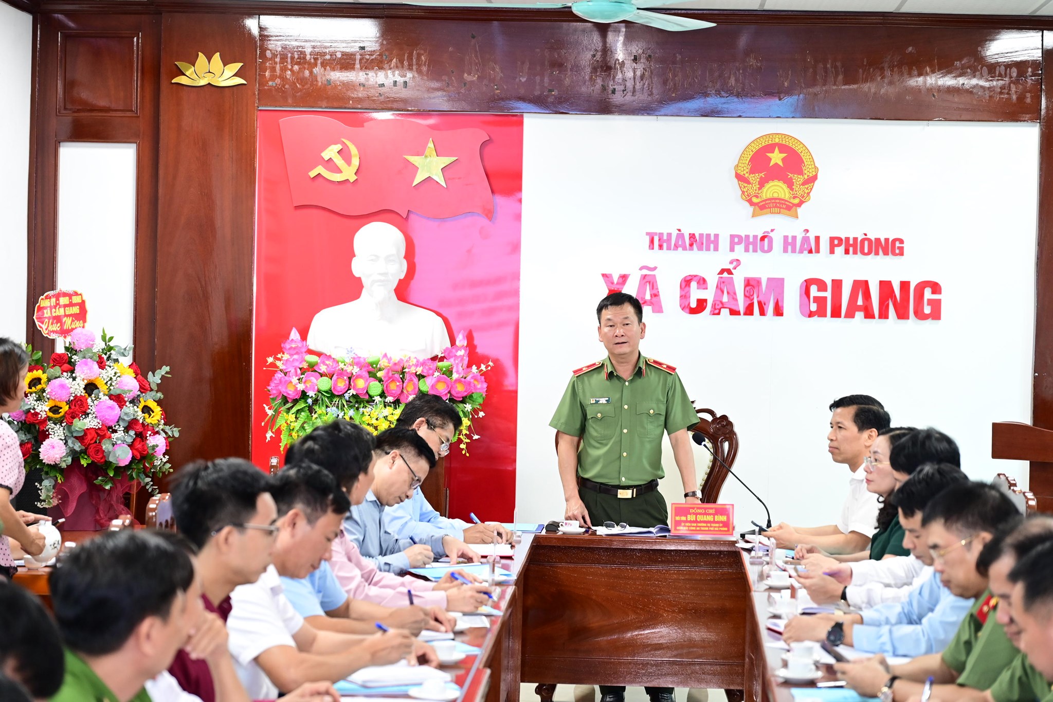 Chiều 24/7/2025, Thiếu tướng Bùi Quang Bình, Ủy viên Ban Thường vụ Thành ủy, Giám đốc CATP dẫn đầu đoàn công tác của Thành ủy Hải Phòng làm việc với Ban thường vụ Đảng ủy xã Cẩm Giang, kiểm tra công tác chuẩn bị Đại hội Đảng bộ xã và thực hiện mô hình chính quyền địa phương 2 cấp. Cùng dự làm việc có đại diện lãnh đạo các Ban của Thành ủy, các sở, ngành liên quan; lãnh đạo một số Phòng nghiệp vụ CATP.