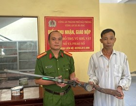 Người dân tự giác giao nộp súng tự chế cho Công an xã Hà Bắc