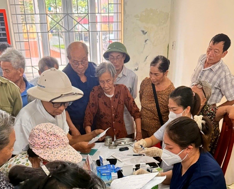 Tại xã Gia Lộc, đội ngũ y, bác sĩ, CBCS Bệnh viện CATP đã tổ chức thăm khám, phát thuốc miễn phí và tặng 250 suất quà cho 250 người dân xã Gia Lộc.